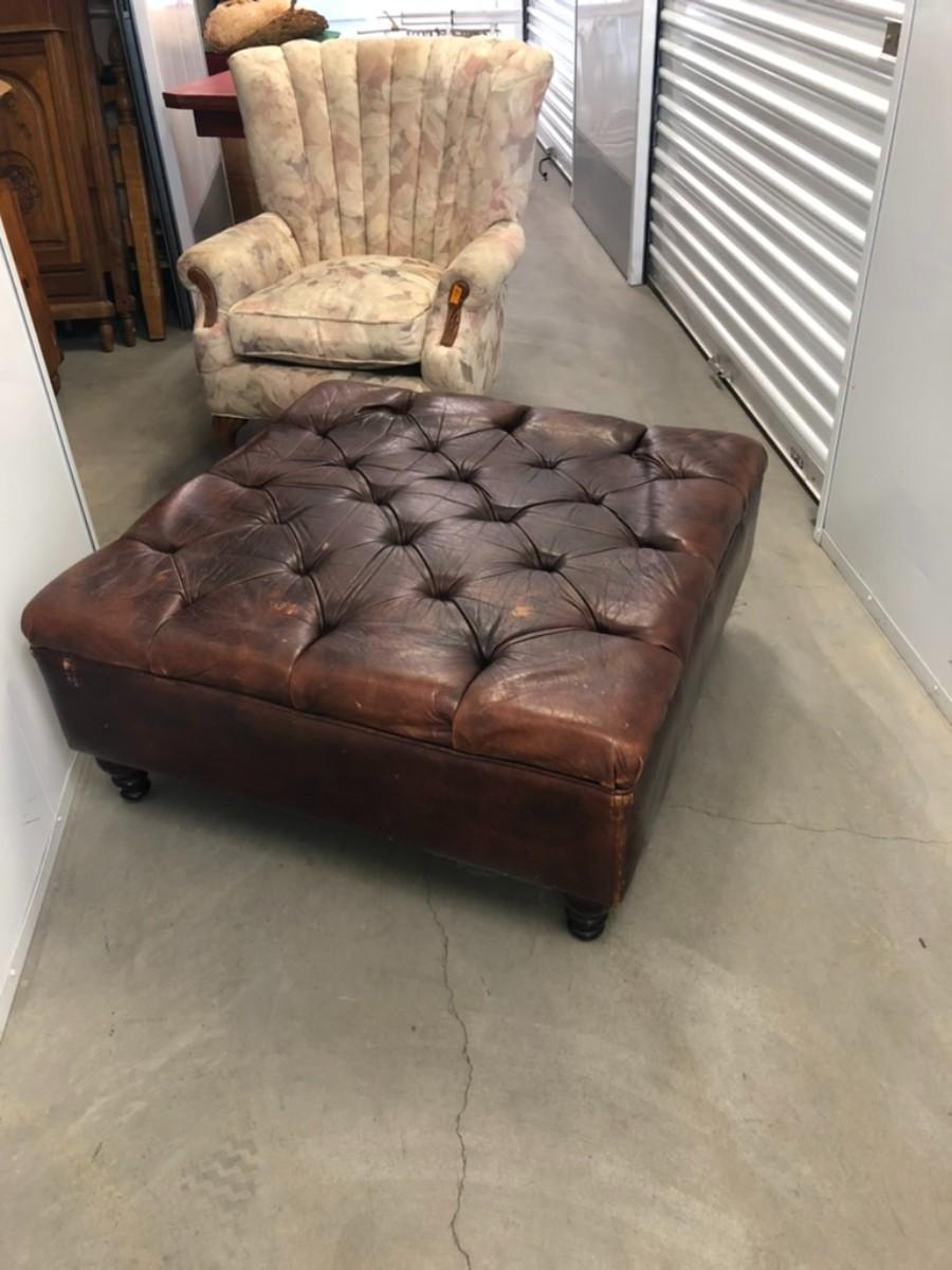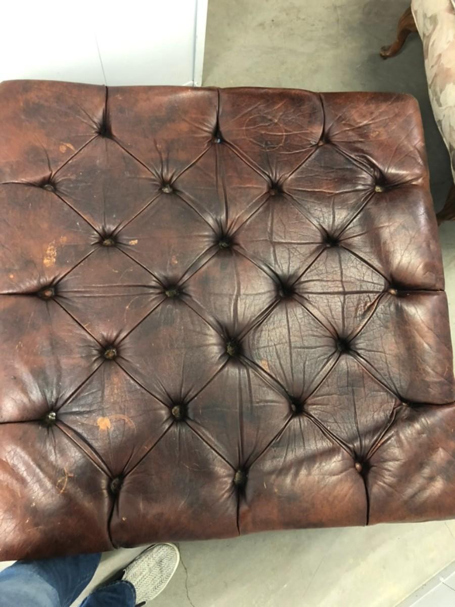 Tufted Faux leather ottoman. Approx 30x30x 19High