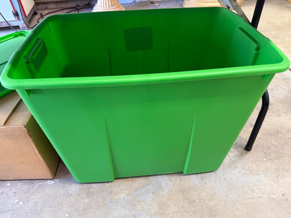 Tub of Kids Tractors/Cranes toys including John Deere & Ford