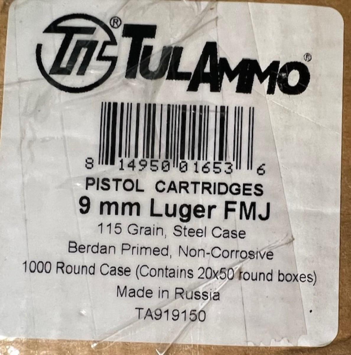 TulAmmo 9mm Luger Ammunition (NO SHIPPING)