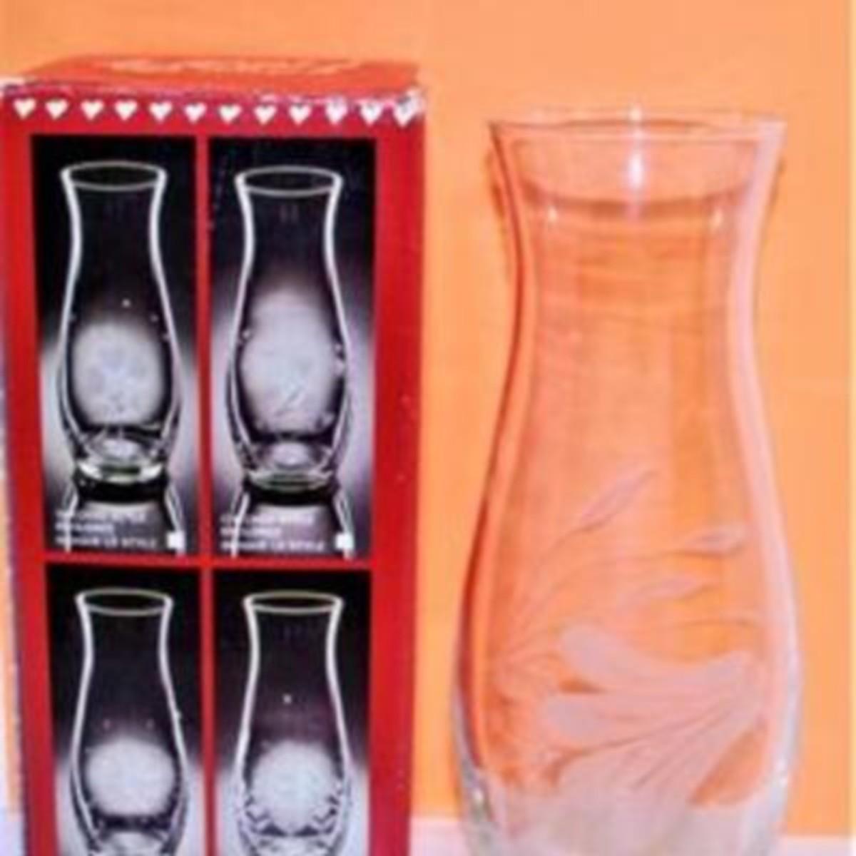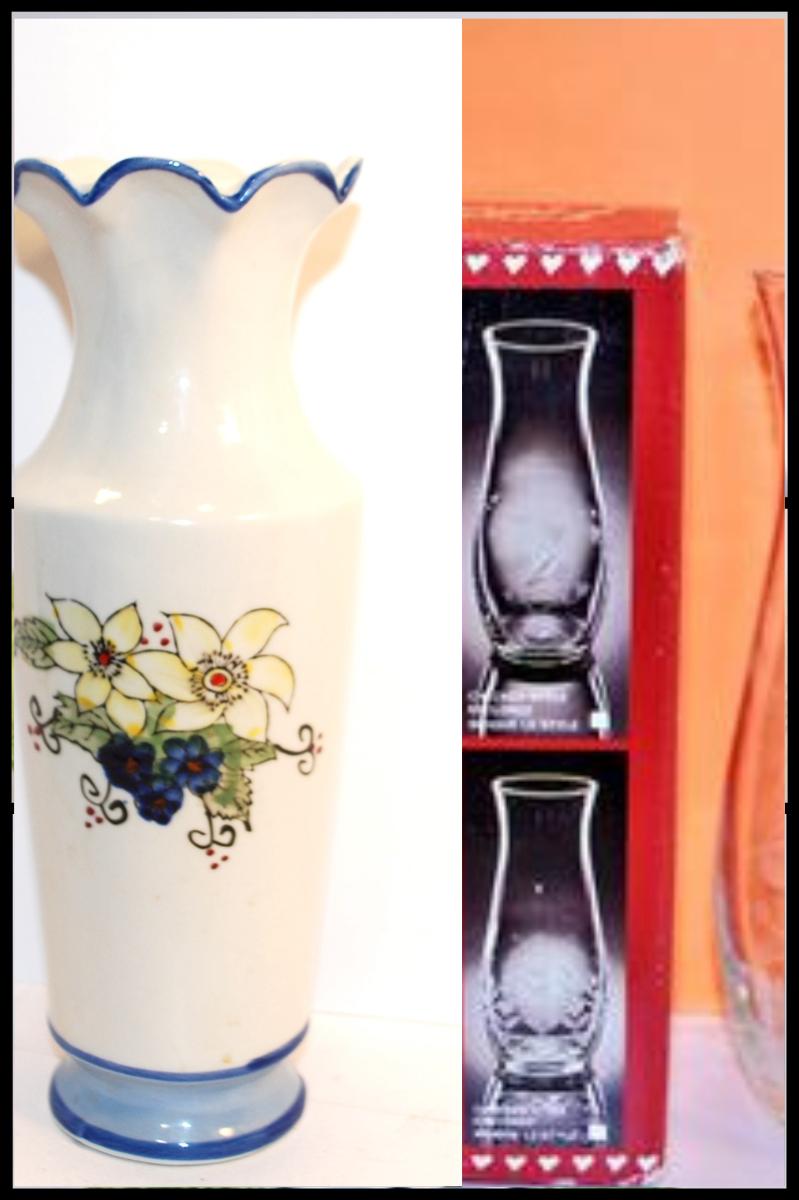 Tulip Glass Vase with Box 7" H & Flowered Vase with a Blue Ring Scalloped Top 10" H