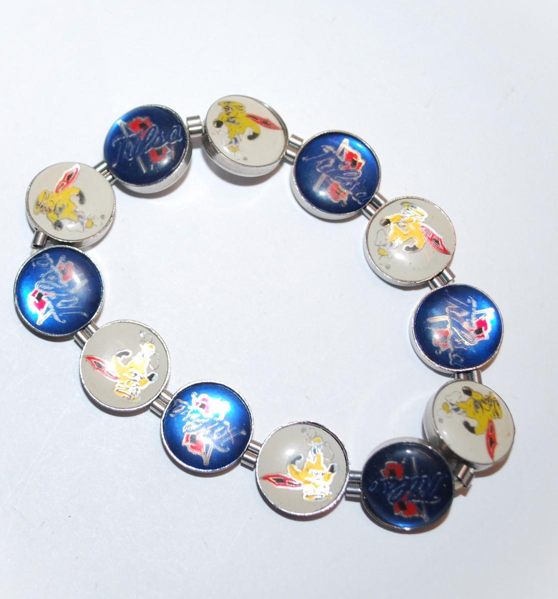 "TULSA" Brand ELASTIC BRACELET (2" Opening) with Colorful Cupped Disks on a Silver Tone Setting