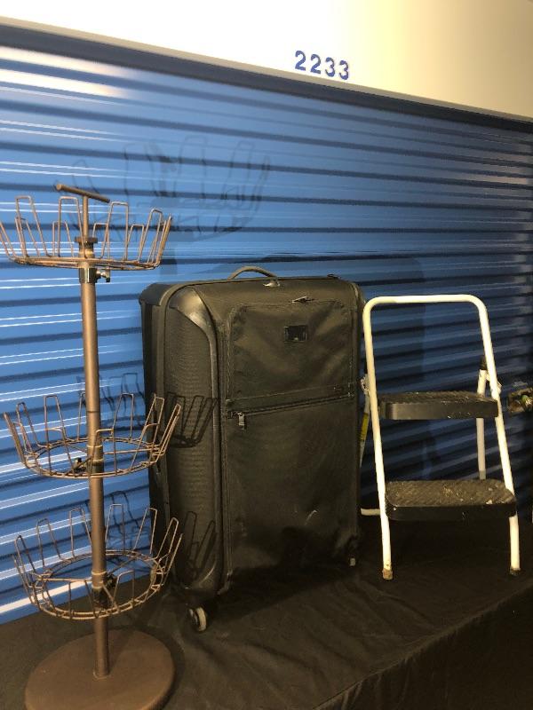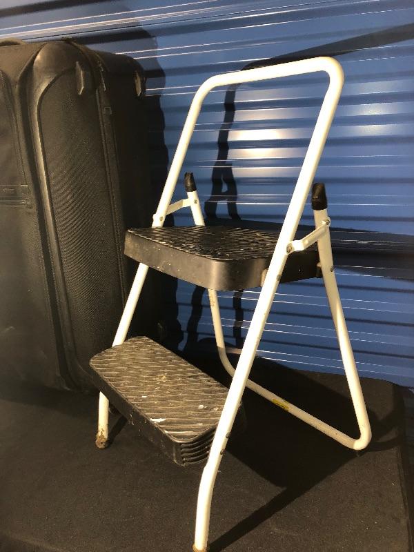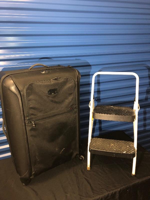 TUMI large black Suite Case, White Step Ladder & Metal Shoe Rack