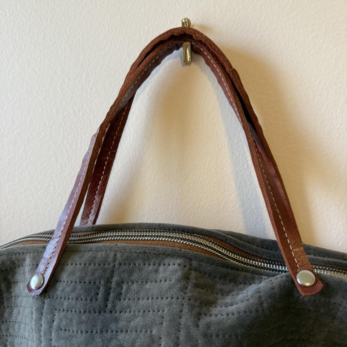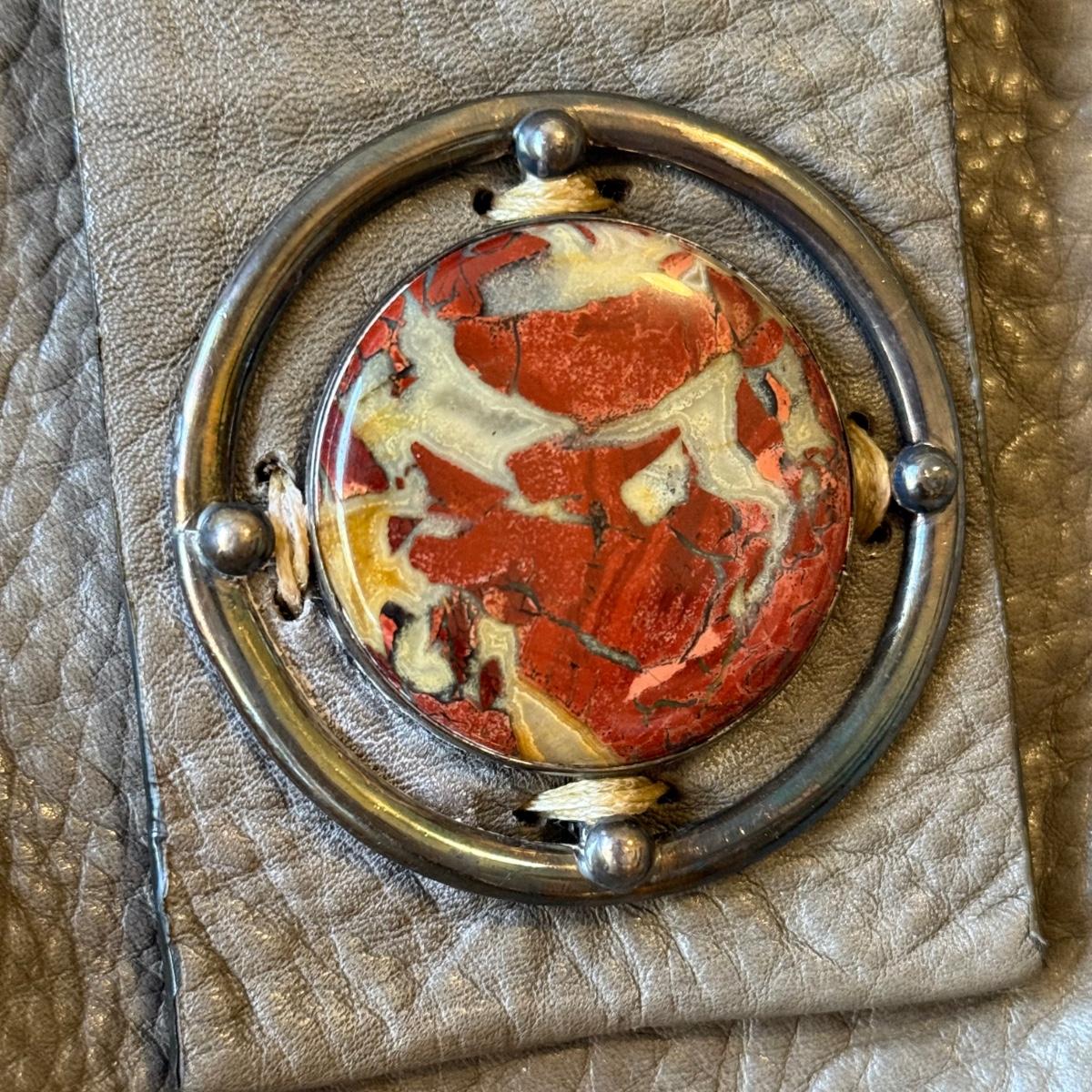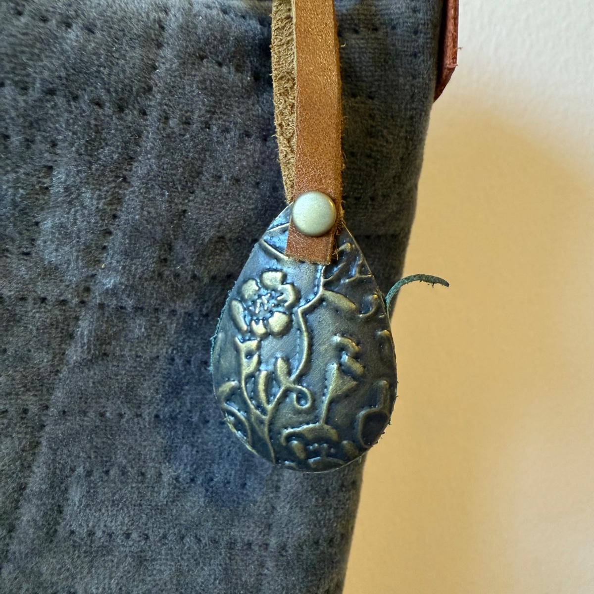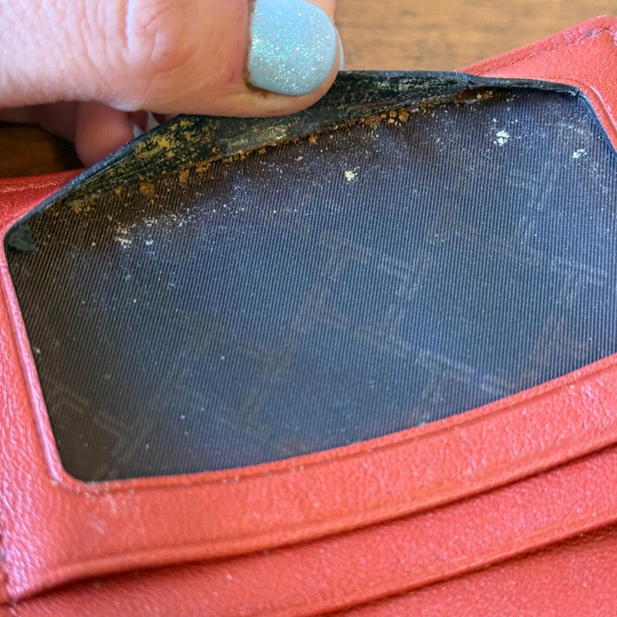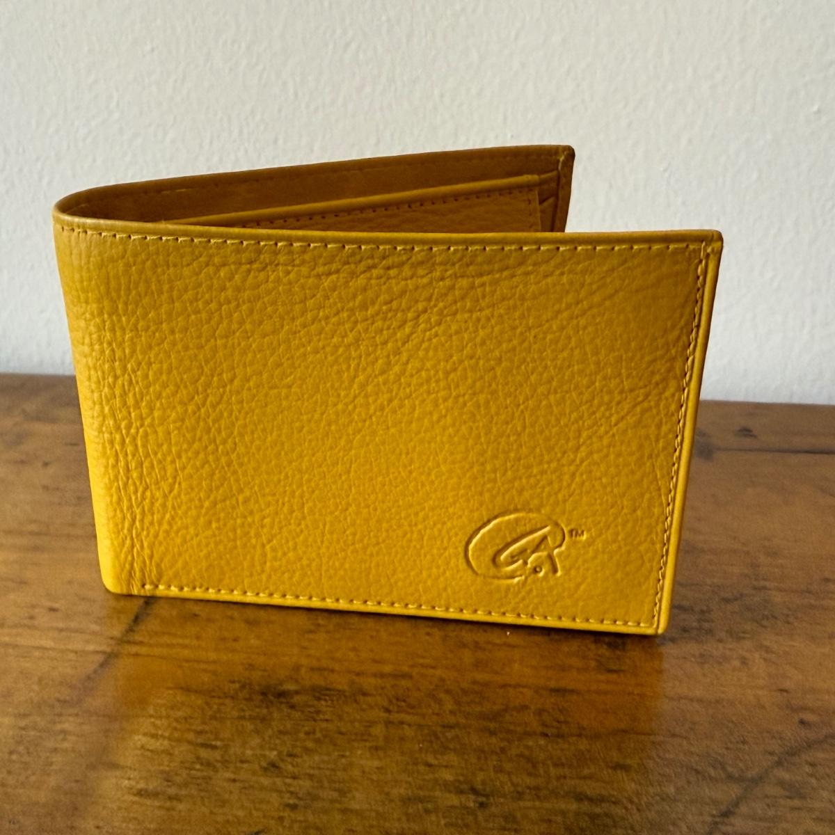Four items total in this lot, including two wallets and two handbags. Both wallets and the Love Crafted handbag are leather or leather-like, and the larger unmarked bag is a very soft velvet fabric. The velvet bag is 18” x 14”. It has a zipper and short leather straps. The Love Crafted bag has a gorgeous gemstone accent on its magnetic clasp. The GA brand wallet comes in what appears to be its original box and it appears to be unused. The Tumi wallet has what looks like glue deteriorating around the front card window, see photos.
