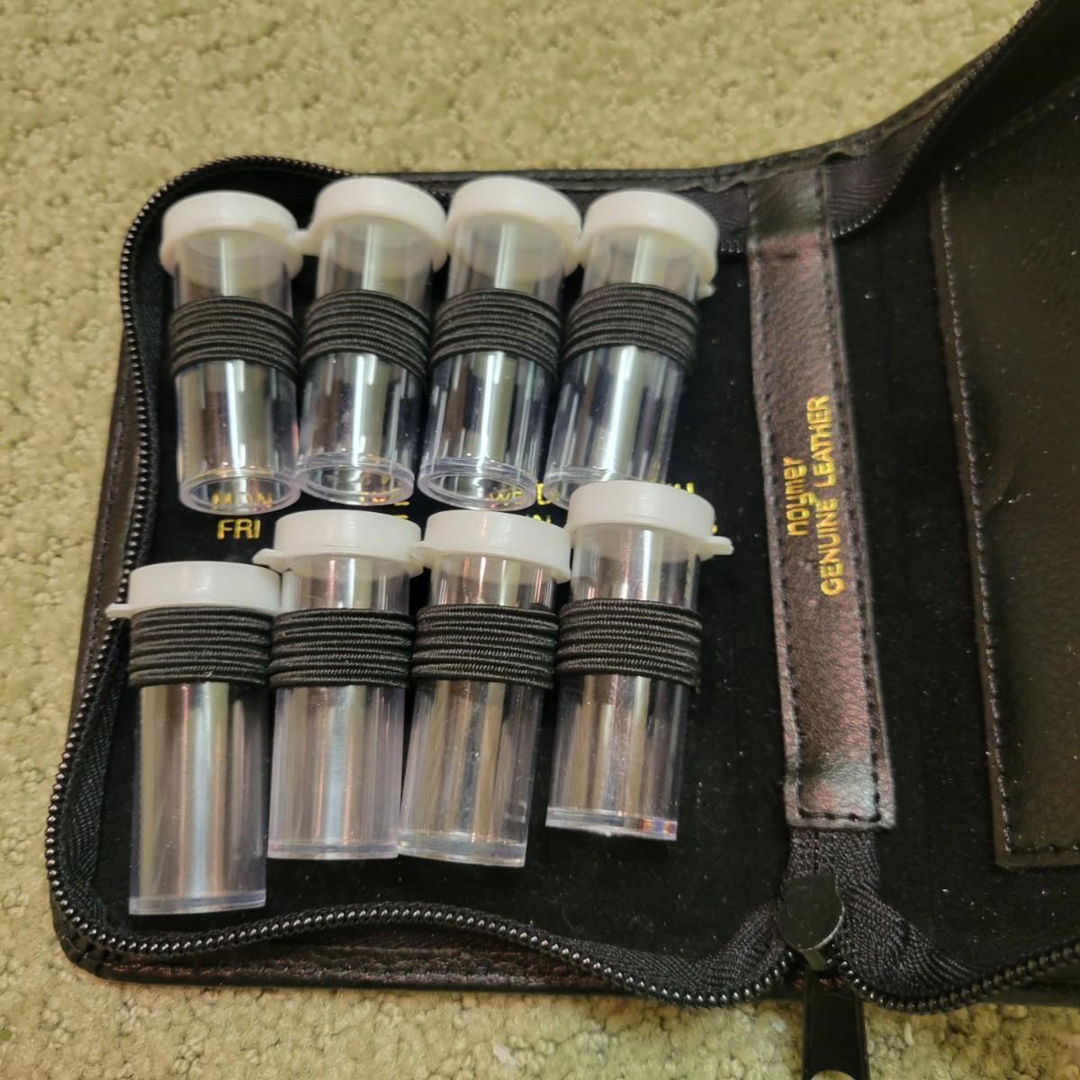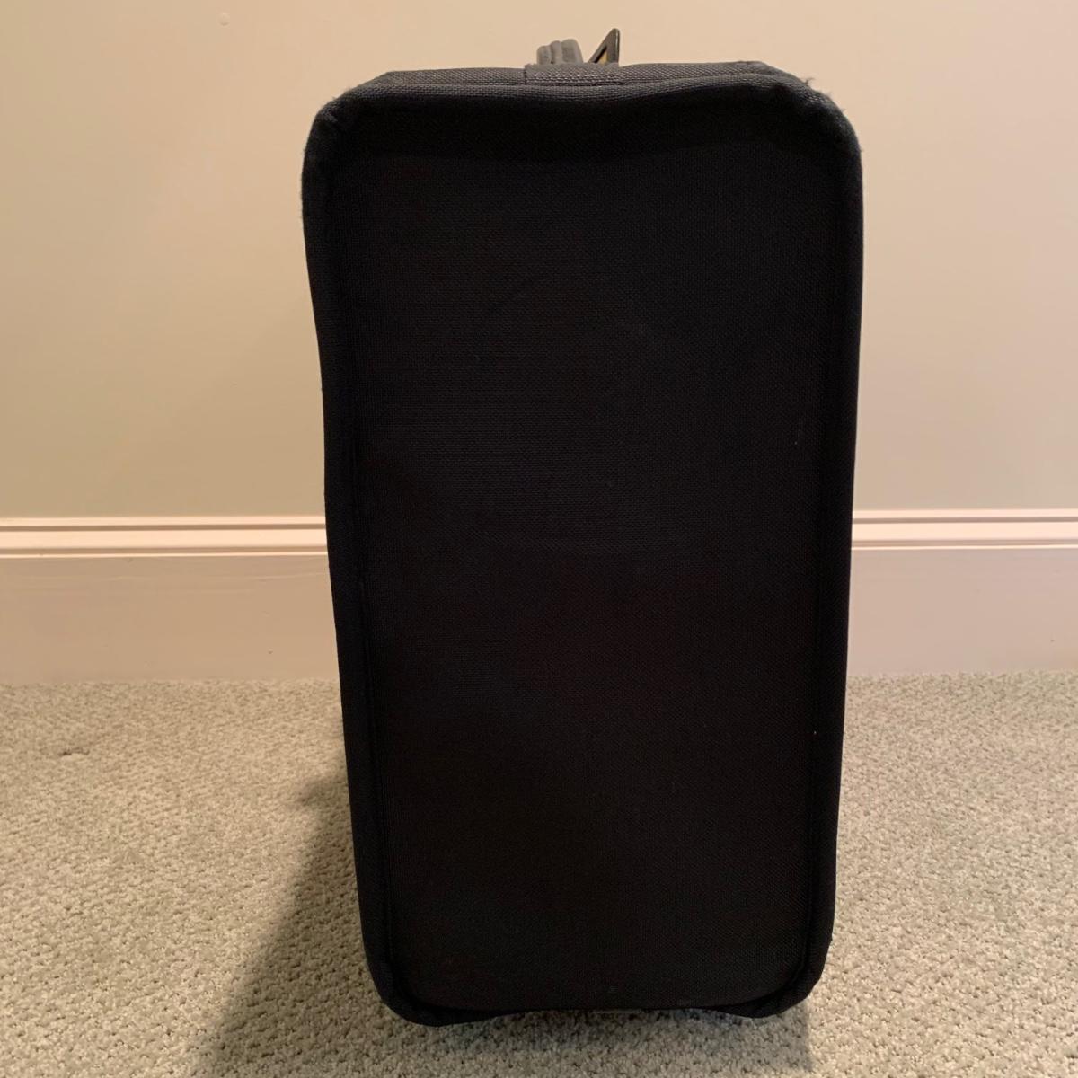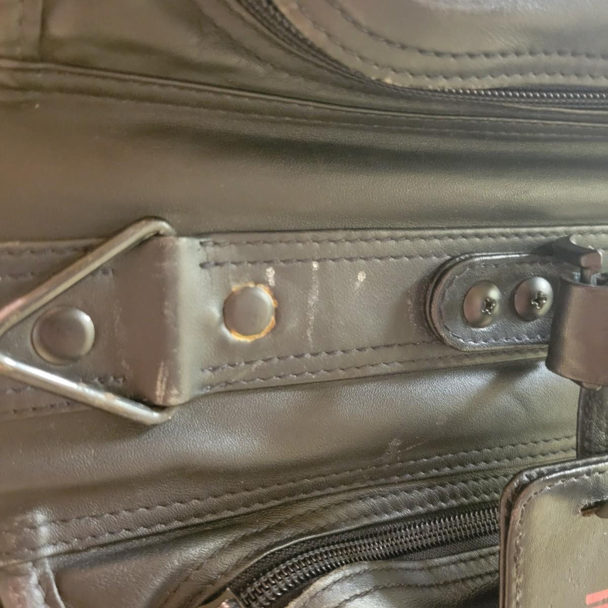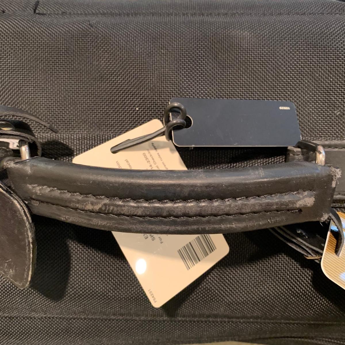 Set of wheeled TUMI garment bags. Lot includes two wheeled garment luggage bags with hanging sweater bag. Largest piece measures, 27” x 10” x 21”H. Also included is a Tumi leather garment bag and a Tumi fabric suitcase. A Franzus travel inverter kit, a leather dop kit and a leather week pill case. Please see photos for more details. Local pickup only.