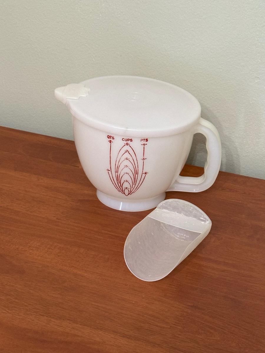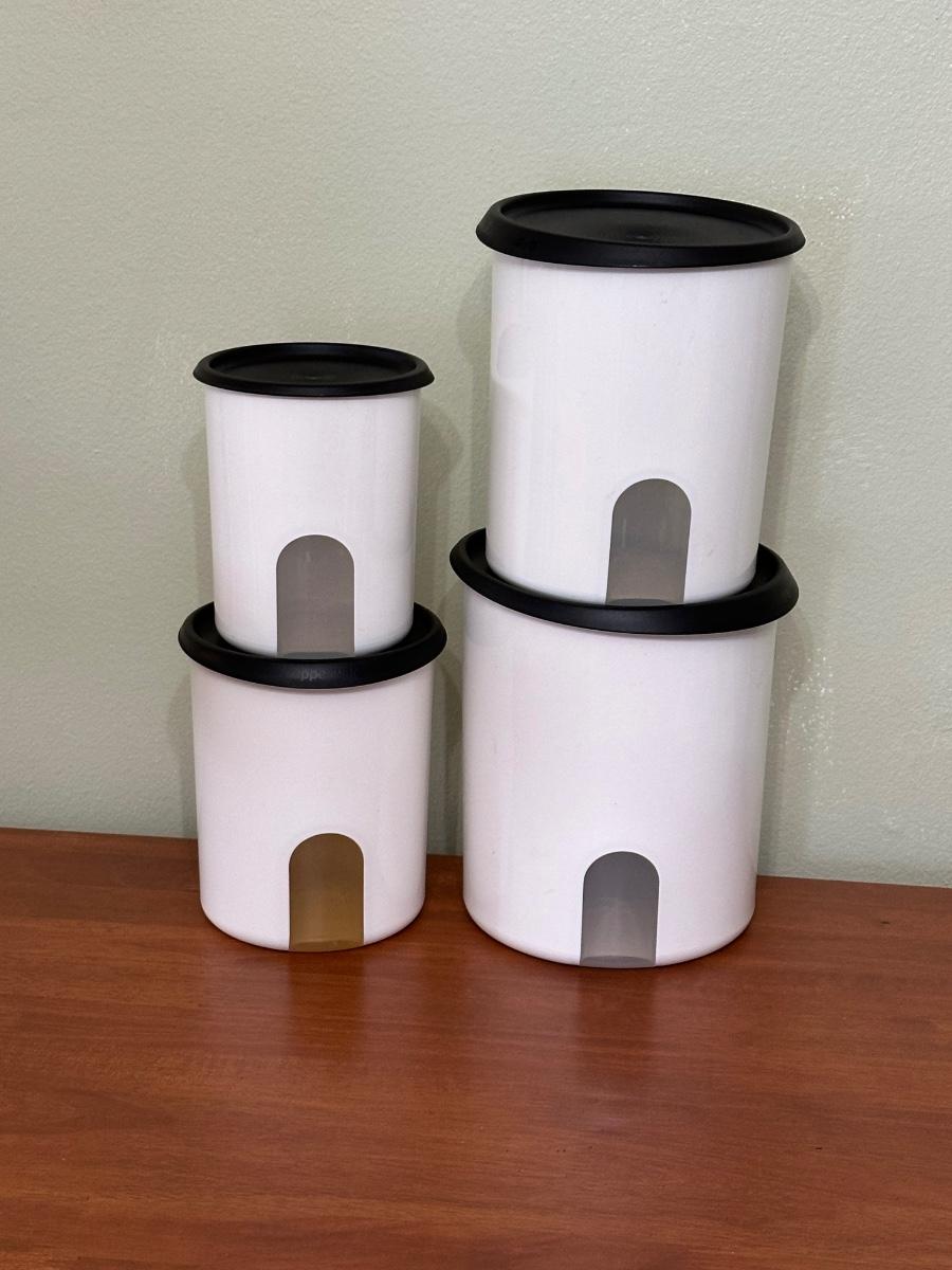 See photos ~ Includes large bowl with no lid. ~ One of the containers was used for coffee, thus the brown discoloration.