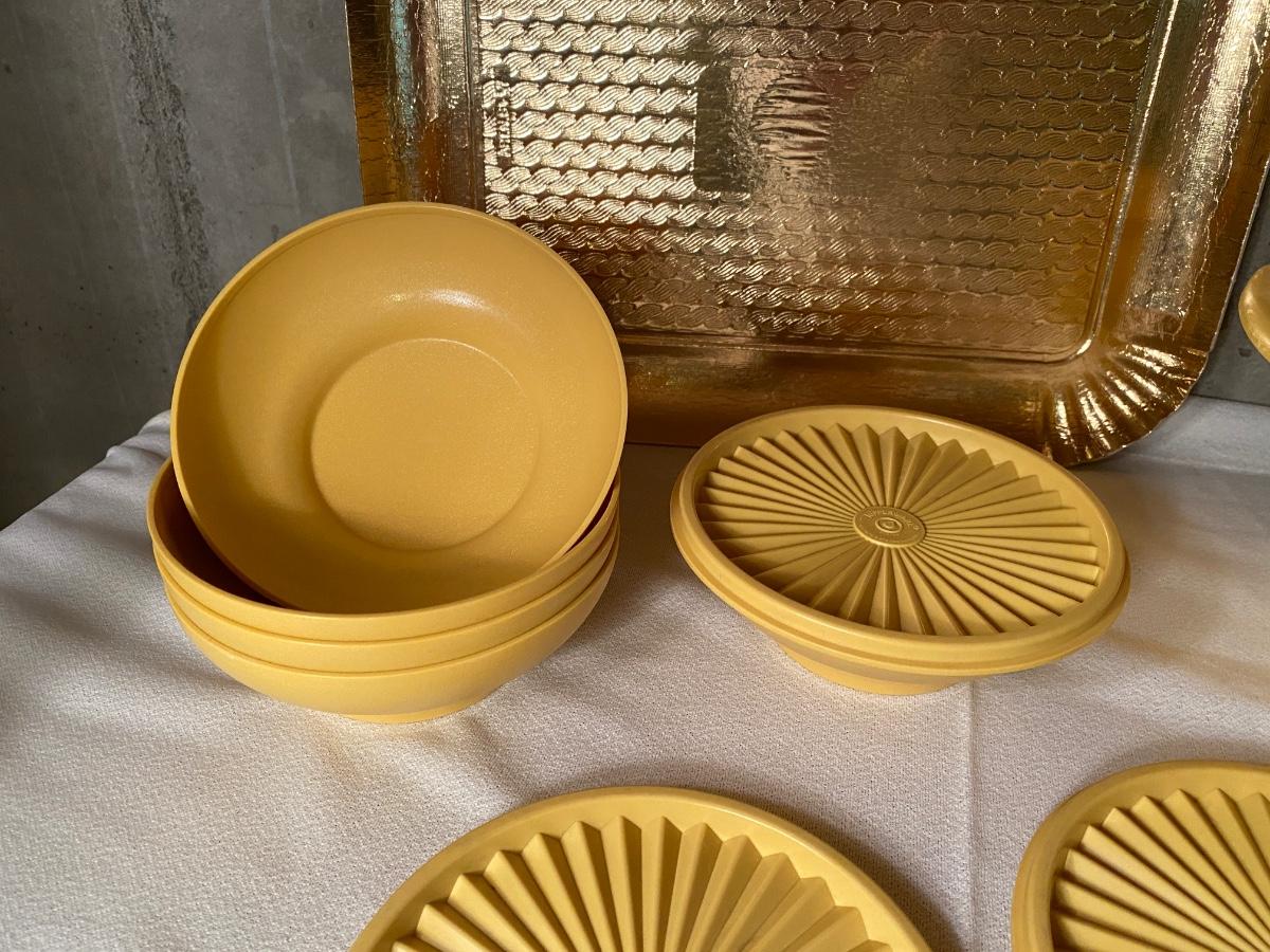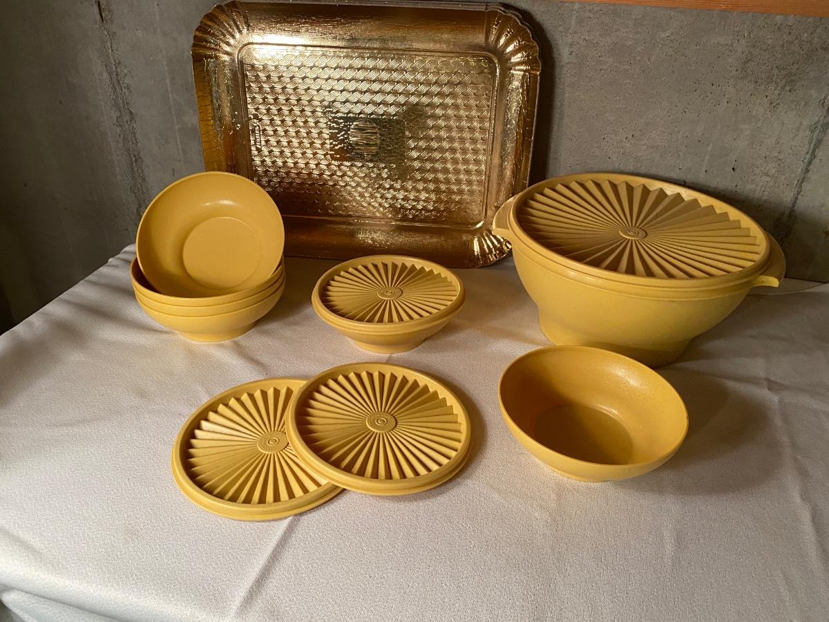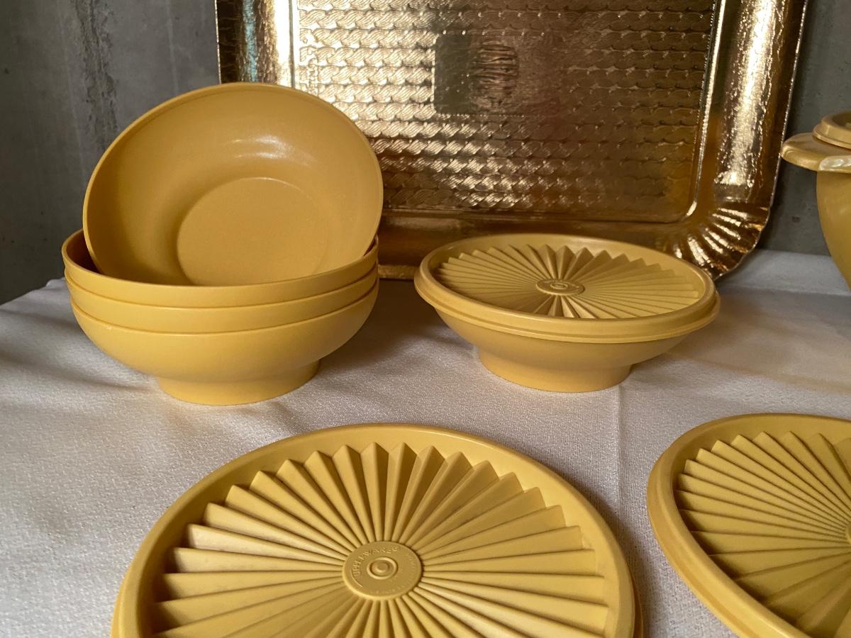 TUPPERWARE BOWLS W/LIDS AND DISPOSABLE TRAYS