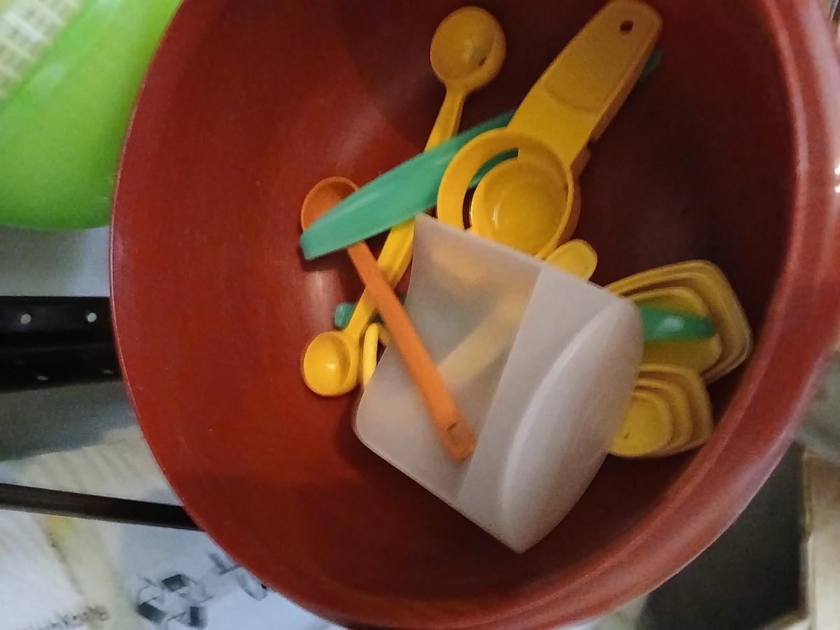 Tupperware brand food storage containers with great utensil gadgets