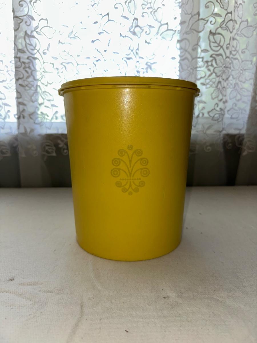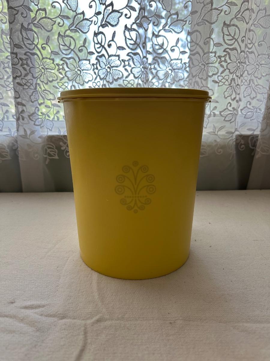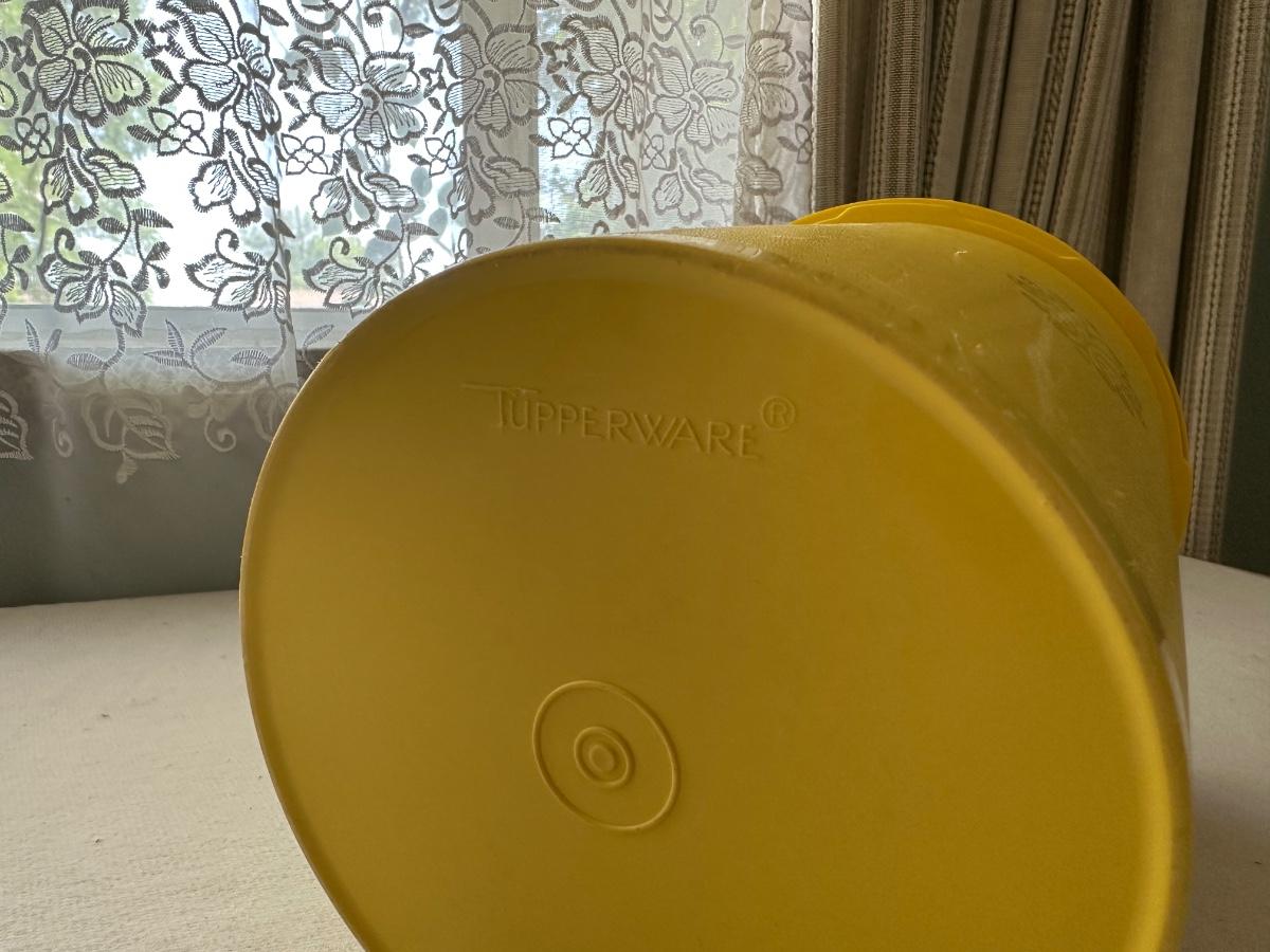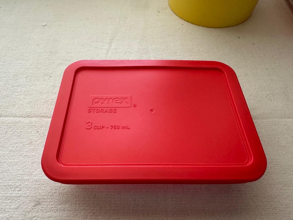 TUPPERWARE CANISTER AND TWO COVERED PYREX BAKING DISHES
