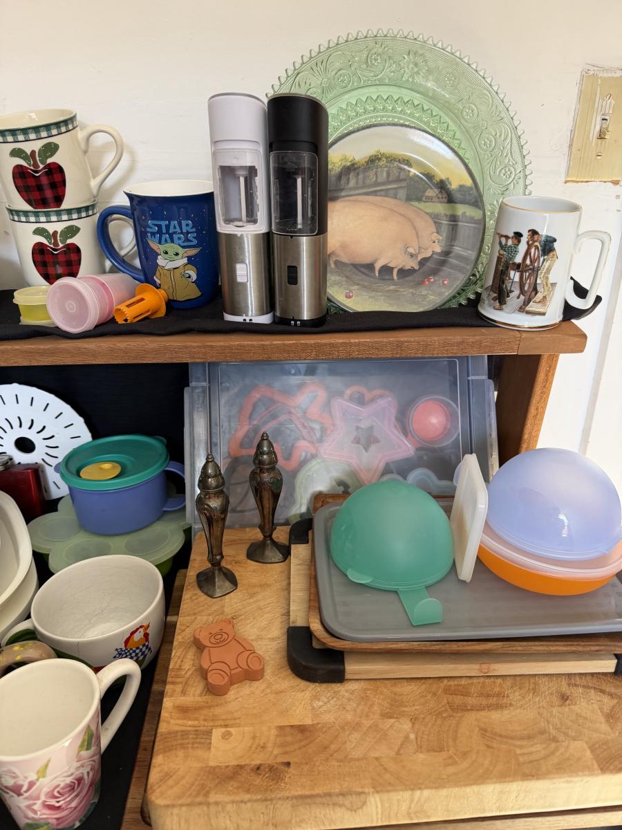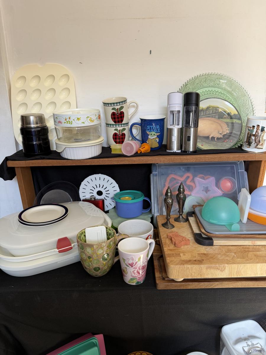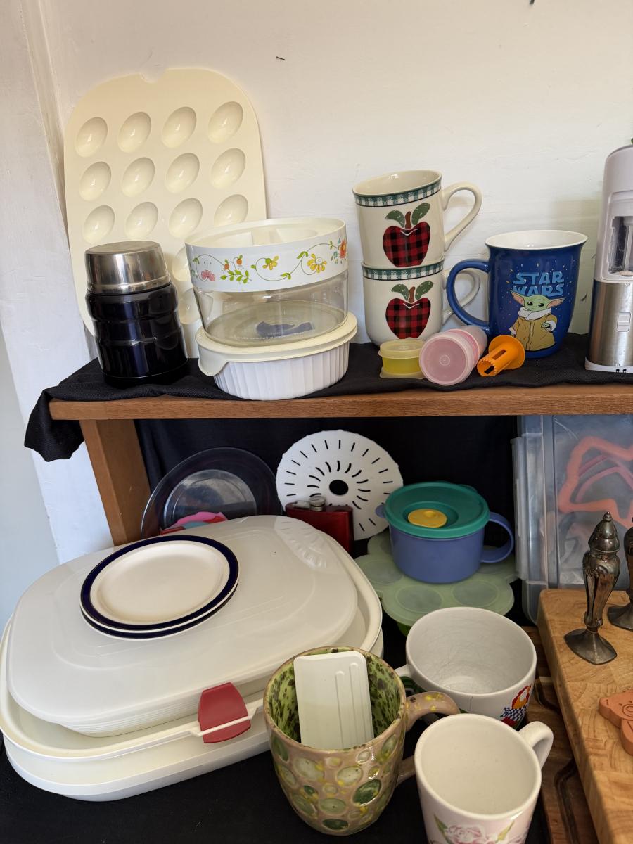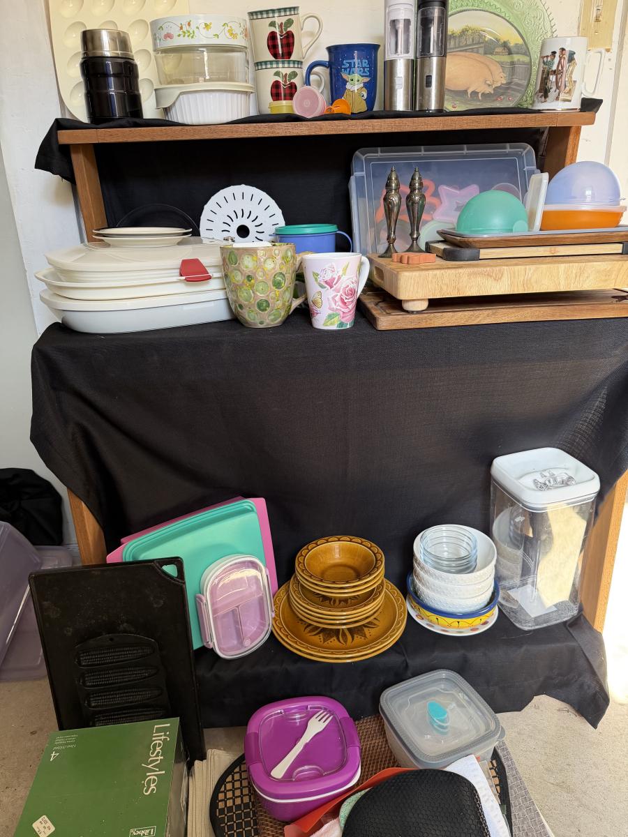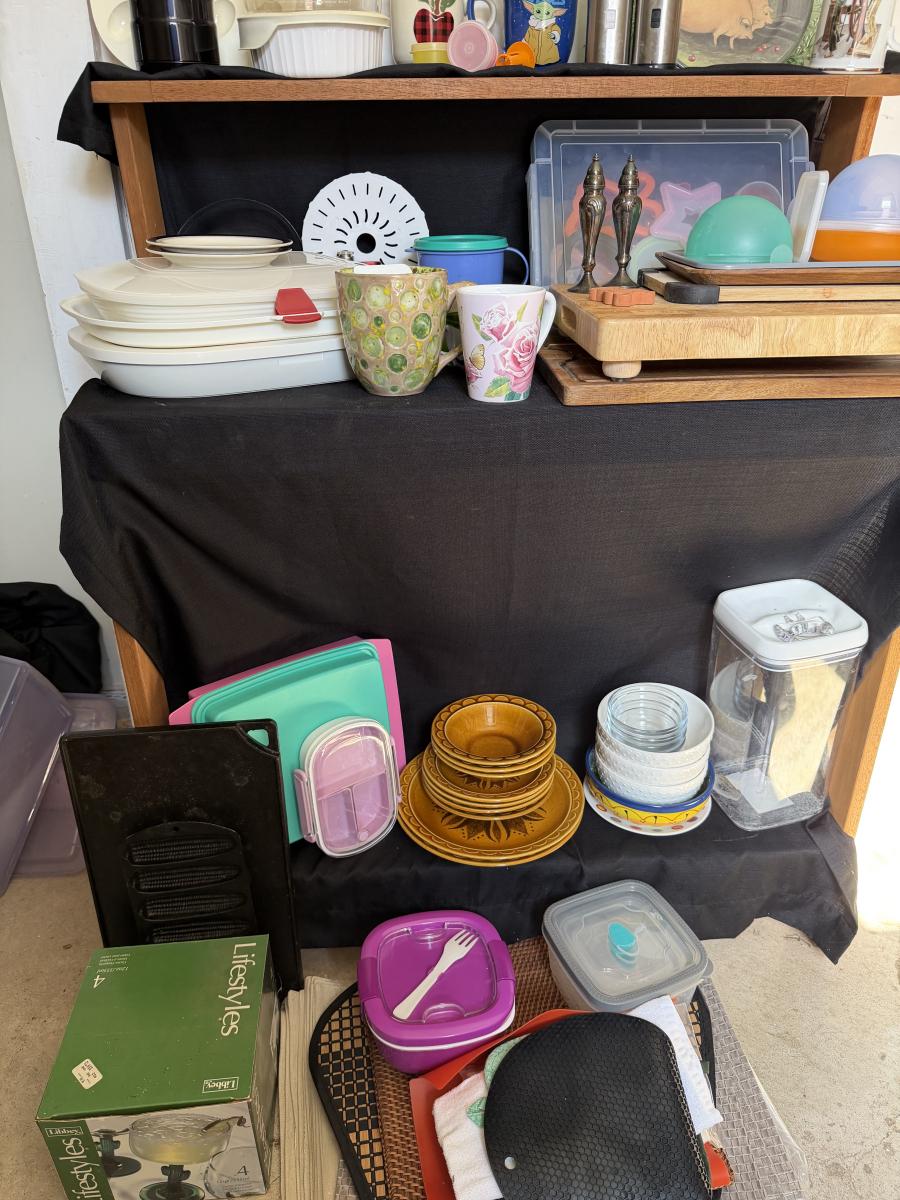 Kitchen Items, Corning Ware, Corelle, Cutting Boards and more.