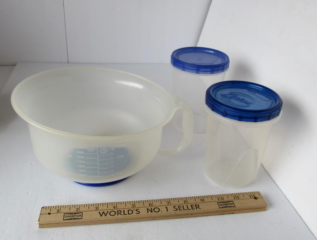 Tupperware Measuring Bowl and 2 Plastic Containers