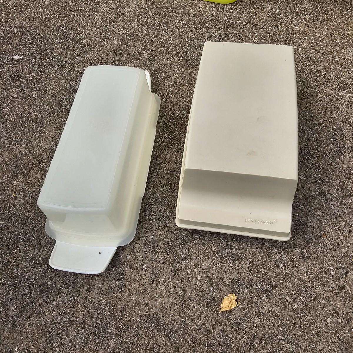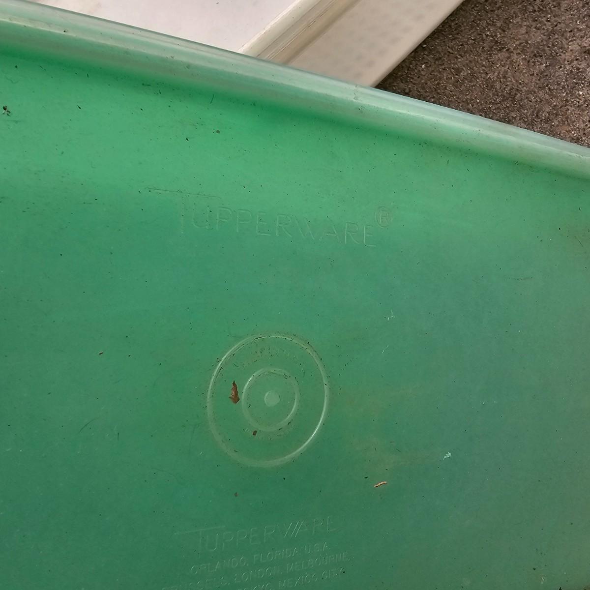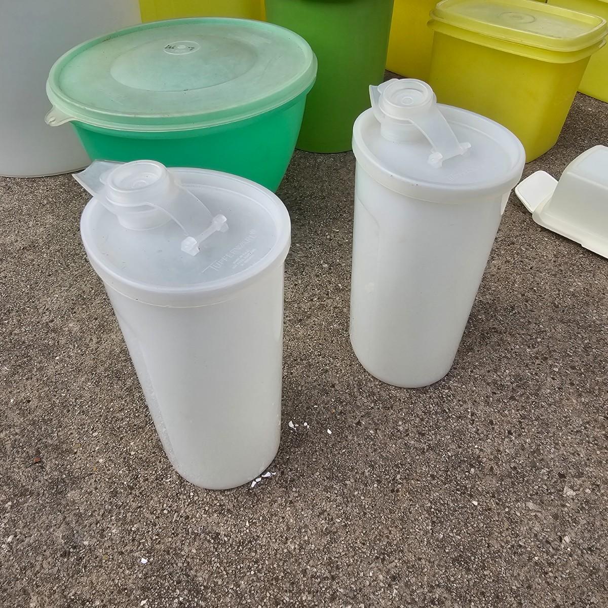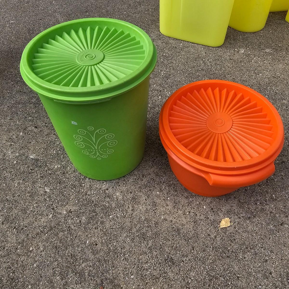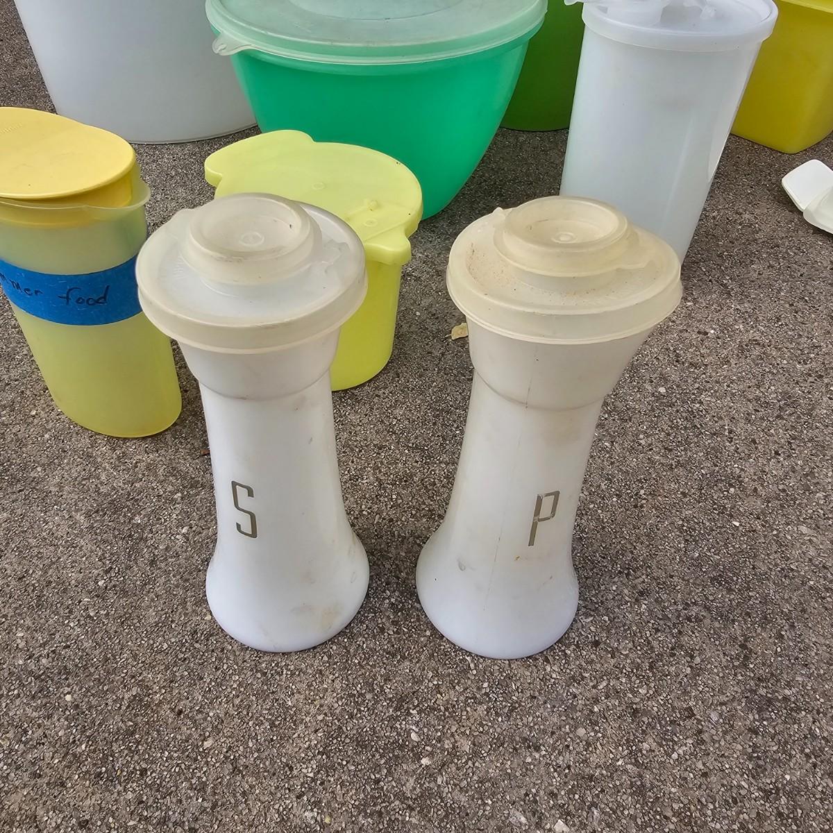 Lots of vintage Tupperware items, all with lids. Tubs, butter dishes, storage items, more. Long green tubs measure 6" x 14.5" x 5"H, large round is 10"D x 10"H, yellow oblong are 3.5" x 4.5" x 4.5"H. All items used. See photos for details. Shipping available.