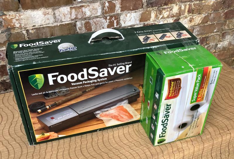 New in the box with six extra rolls here is a Turbo Food Saver...Vacuum packaging system....