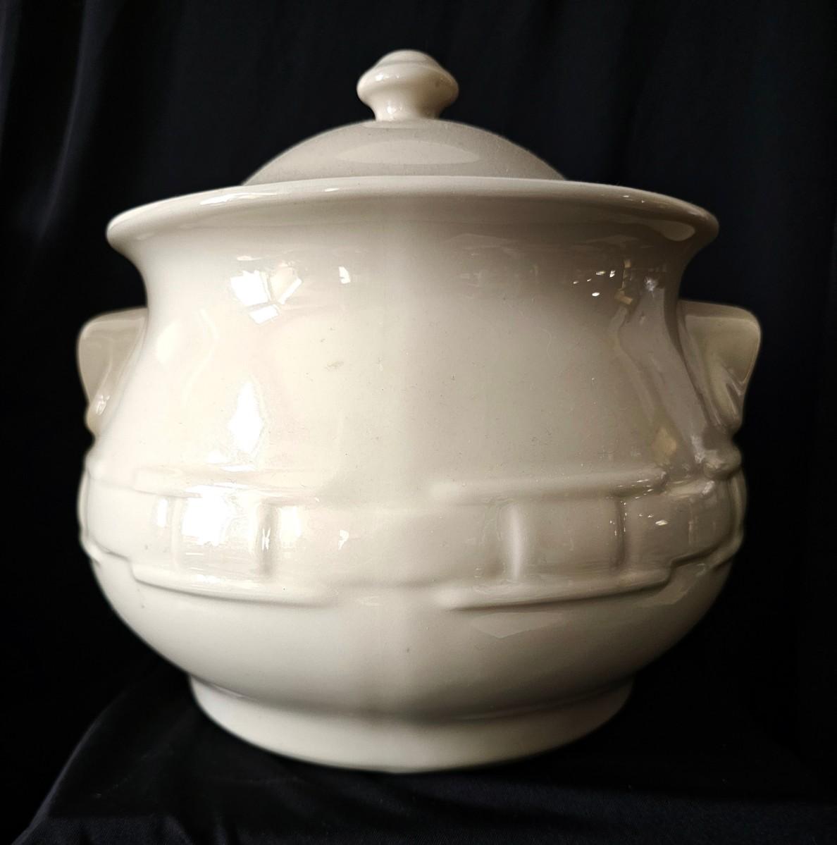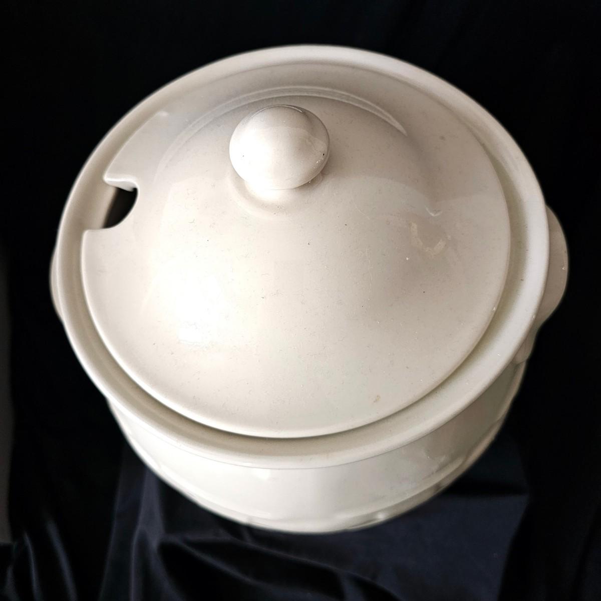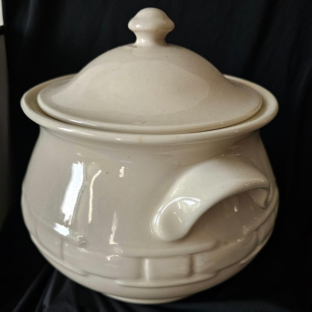excellent condition large soup tureen looks to hold many quarts of soup for a large family meal by Longaberger, off-white ceramic