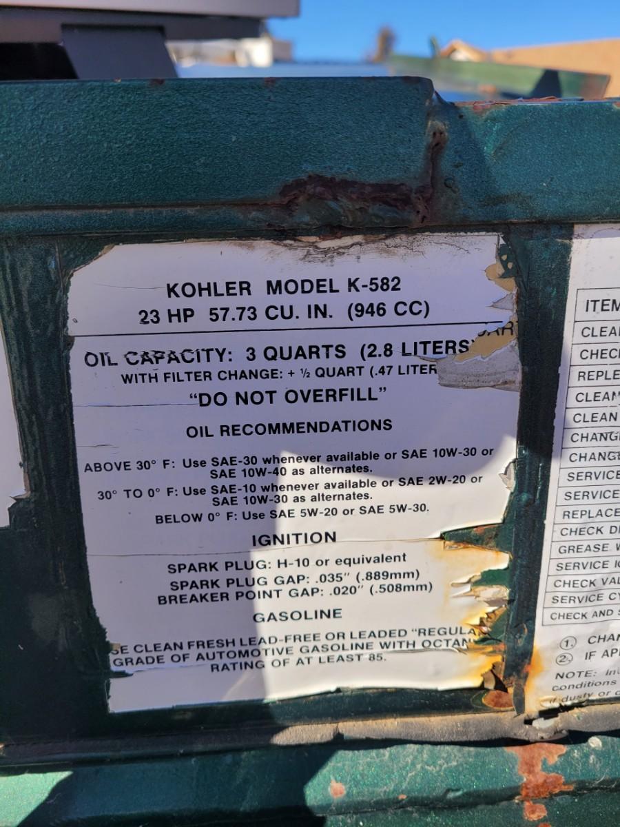 It does crank over, there's a quarter inch gas line that broke trying to drain out the old gas to get it started. Will need a battery and fresh gas and probably other things. Motor turns over and has compression. Unknown complete working condition. The unusual thing about this 23 horsepower Kohler motor is that it has two drive shafts. This came from Woodward governor and does run with a little effort but it is being sold for parts.