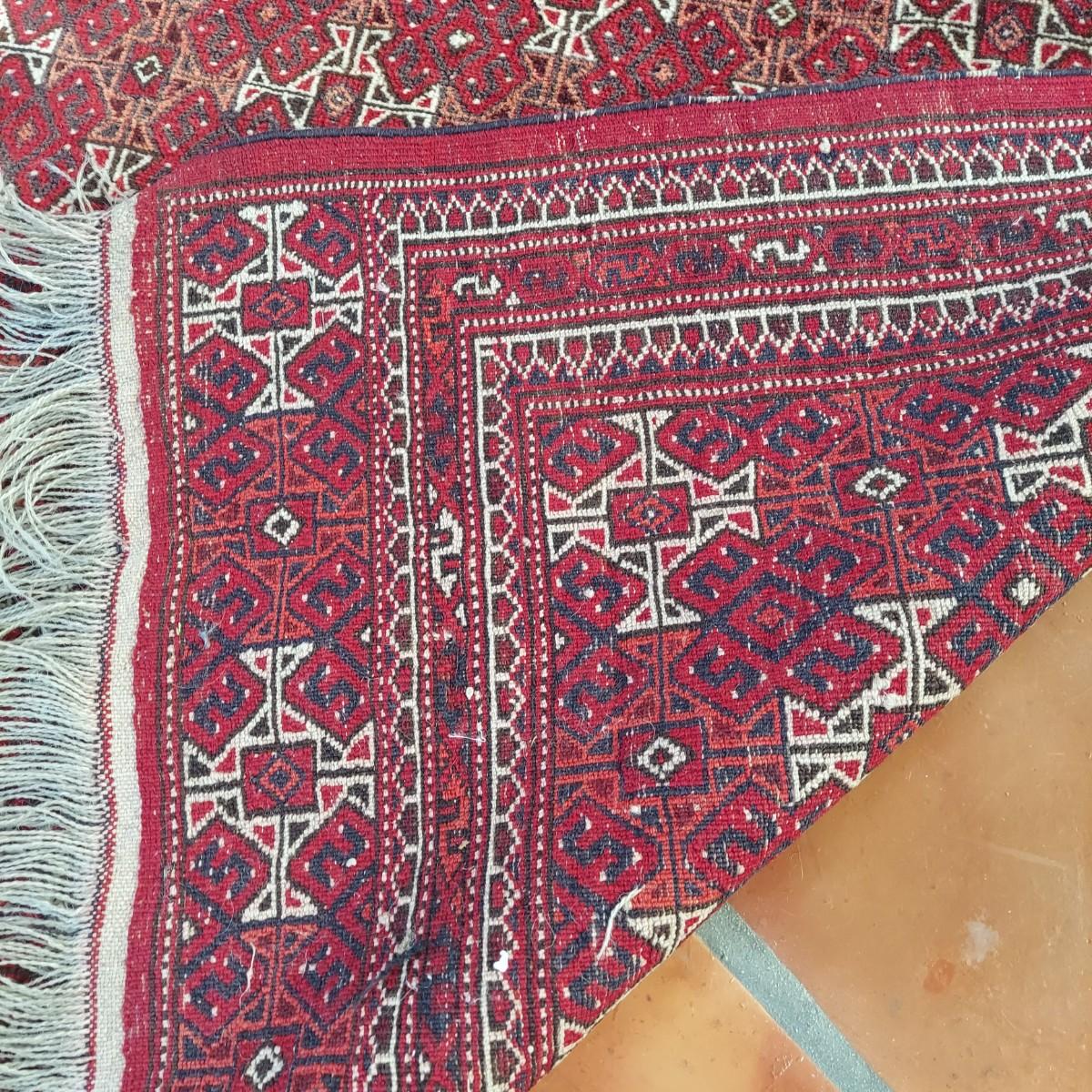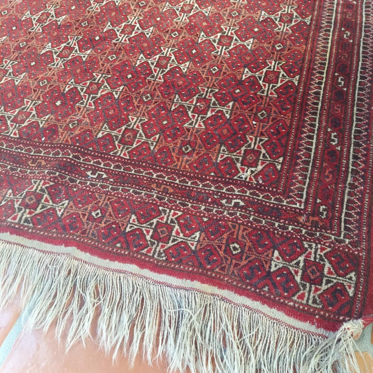 Beautiful woven area rug in shades of red, brown, orange and tan. Appears to be a Turkish style made from natural fibers. Measures approximately 44” x 69” including the fringe. Please see photos for details. Shipping available