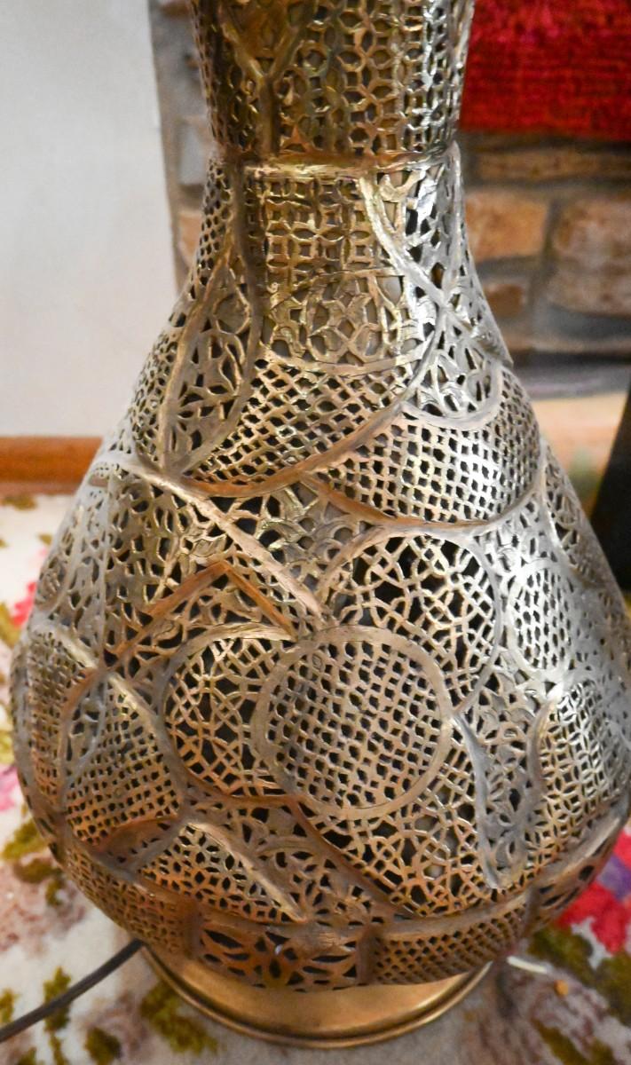 MOROCCAN / TURKISH PERFERATED METAL FLOOR LAMP WITH LIGHTED BASE