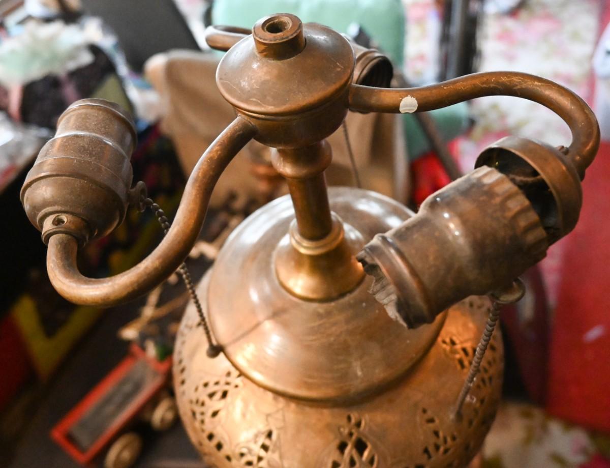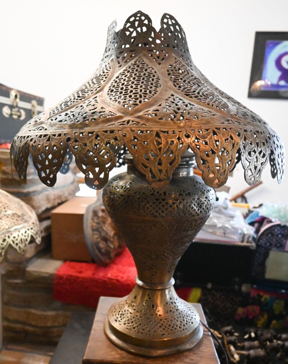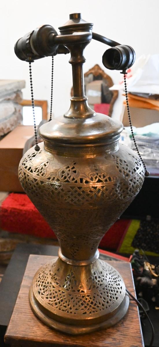 MOROCCAN / TURKISH PERFERATED METAL TABLE LAMP AND SHADE WITH LIGHTED BASE