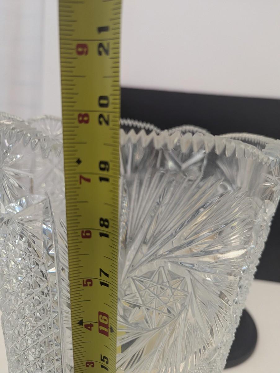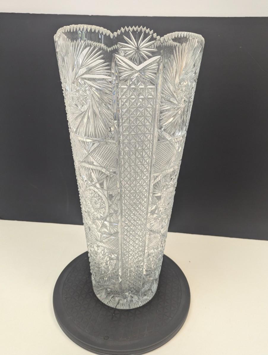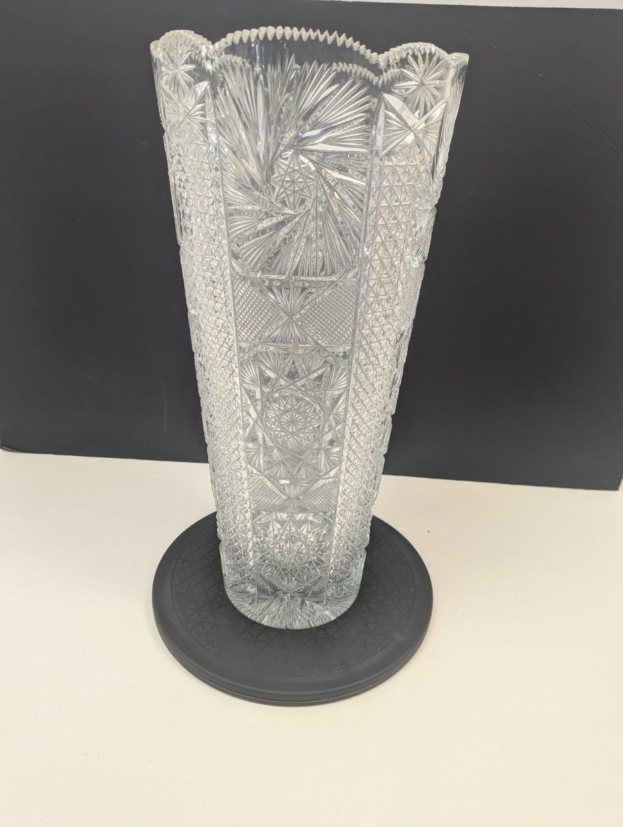 Vintage Turkish Brilliant Hand Cut Glass Vase Impressive Diamond and Pinwheel Cut Vase 20" Tall
