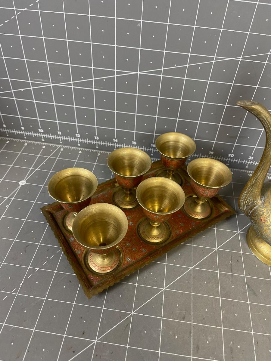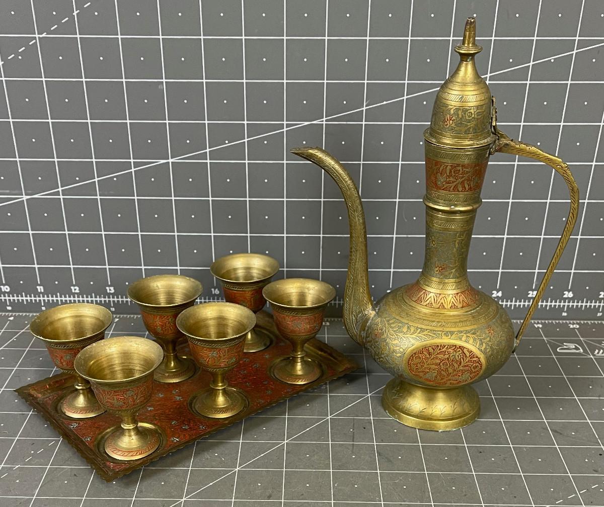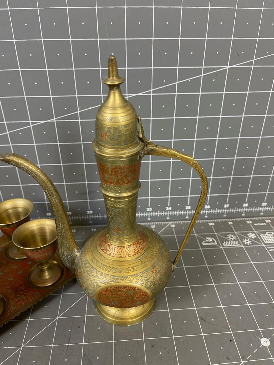 Turkish / Middle Eastern Brass Coffee Pot and 6Cups W/ tray