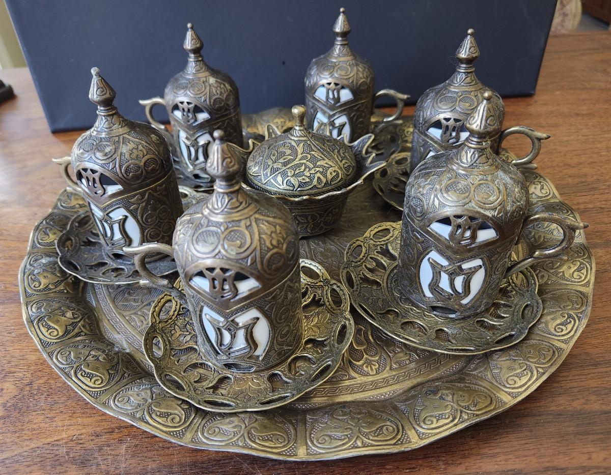 Turkish Old Brass Espresso Coffee Service