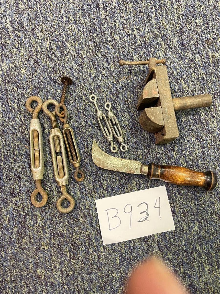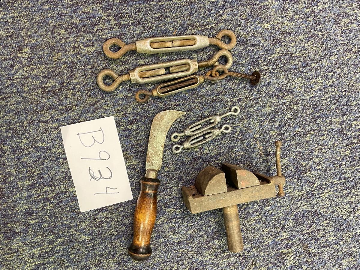 Turnbuckles, vise, knife