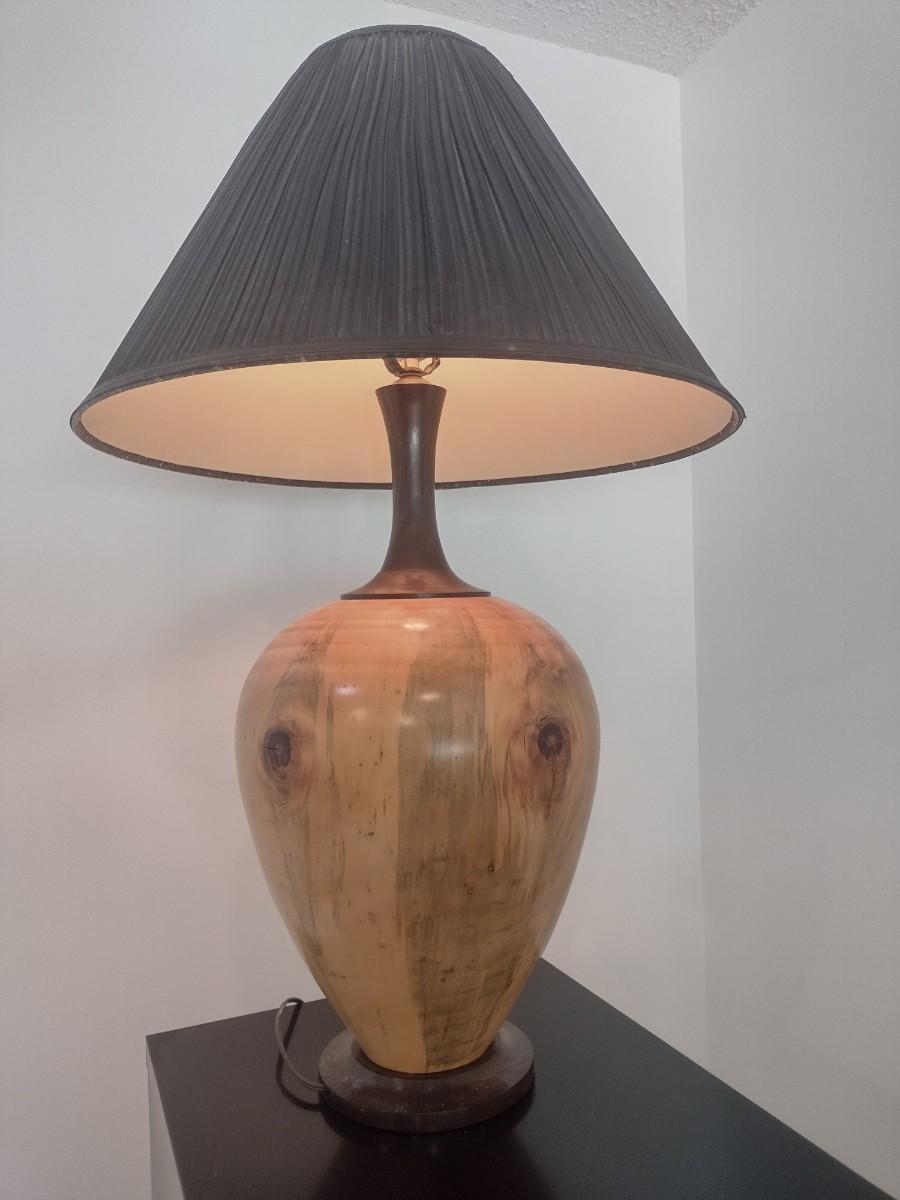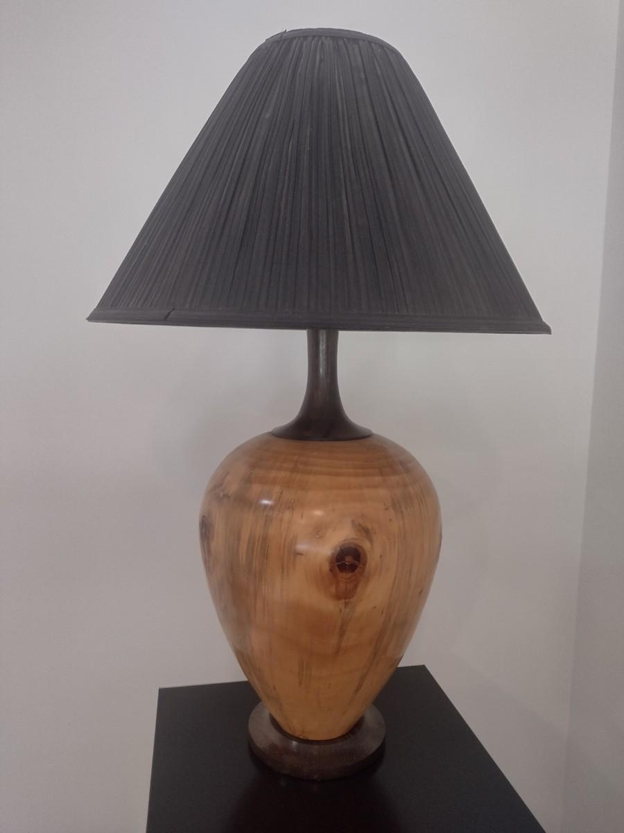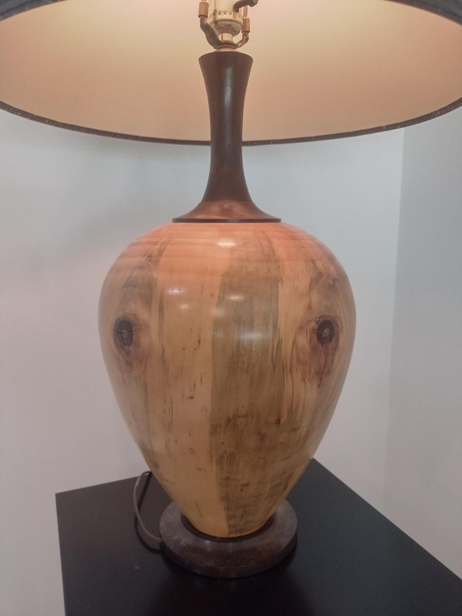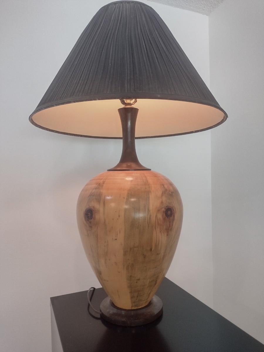 Turned Wood Table Lamp with Shade by Bobby Phillips