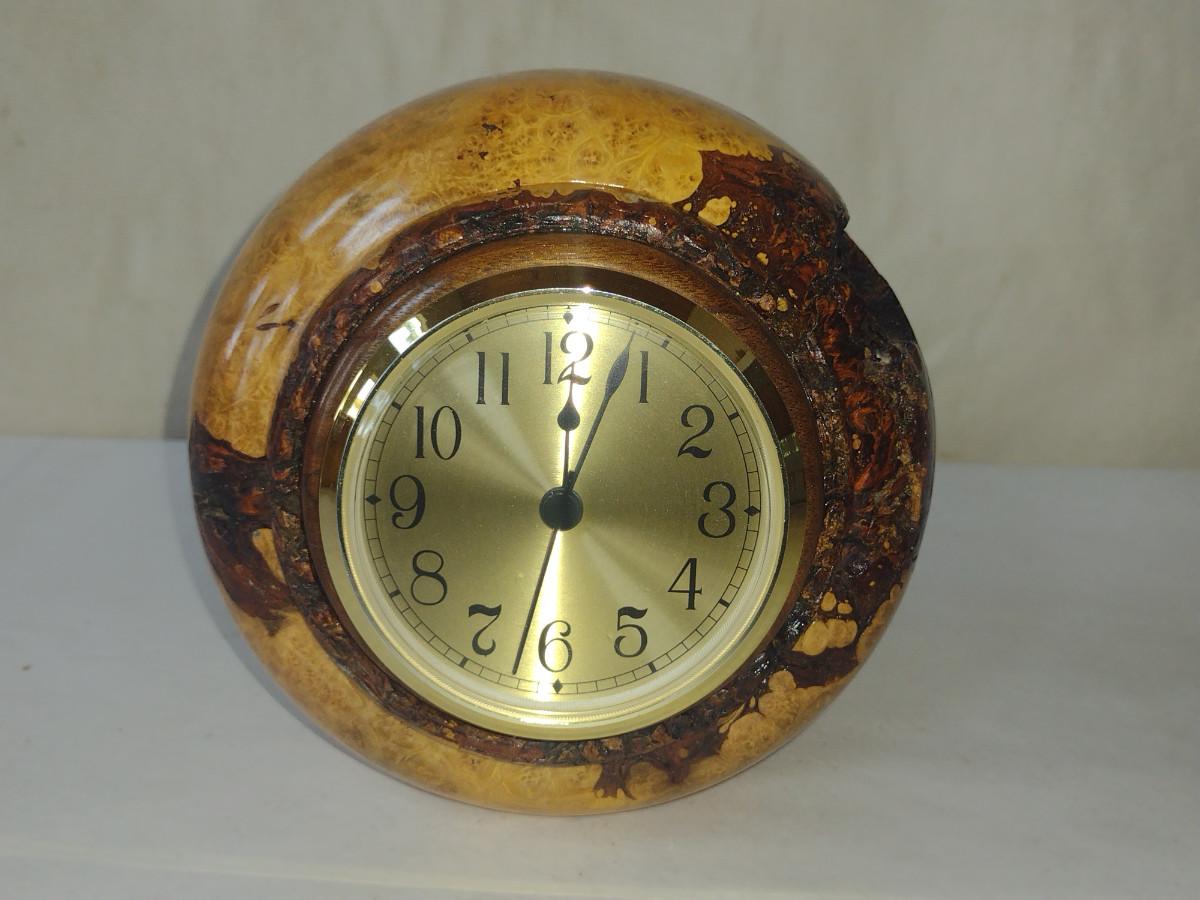 Turned Wooden Clock by Bobby Phillips- Maple Burl and Walnut (#57).