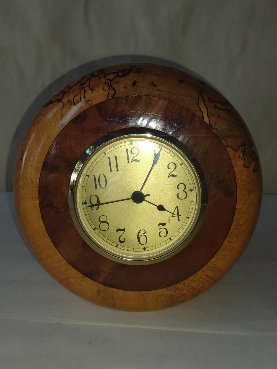Turned Wooden Clock by Bobby Phillips- Spalted Maple and Myrtle Burl (#60).
