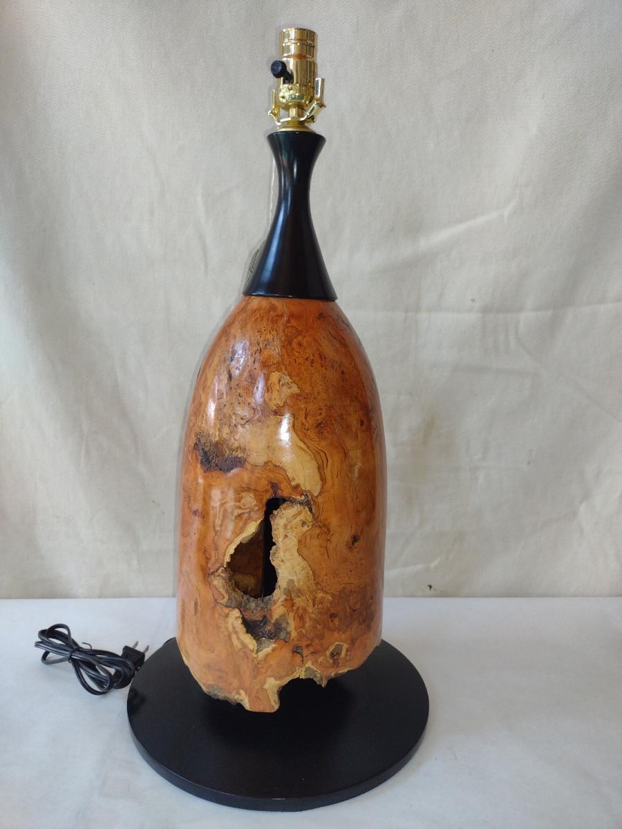 Turned Wooden Lamp by Bobby Phillips-Cherry Burl and Ebonized Basswood (#89). Item is approx 23 1/2" tall.