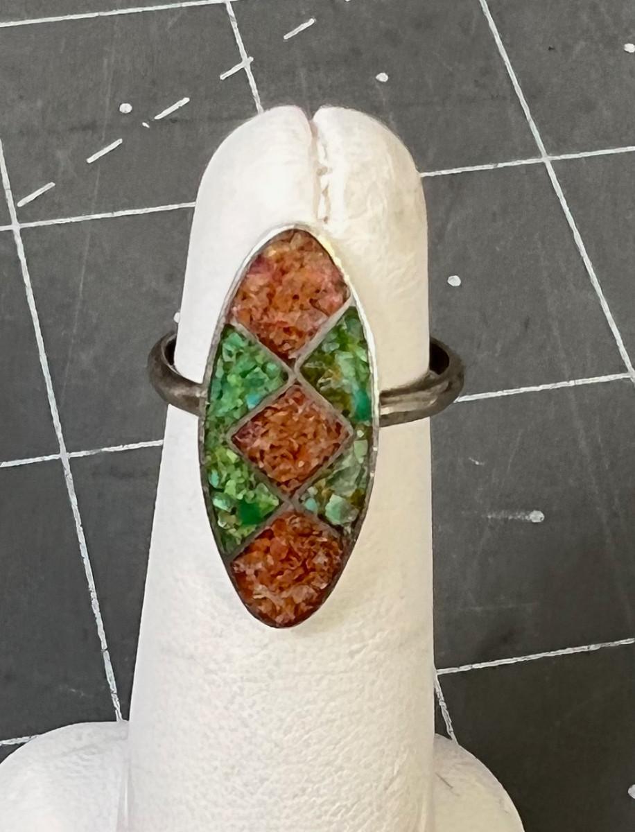 Turquoise and Coral Size 3-1/2 Crushed Stone