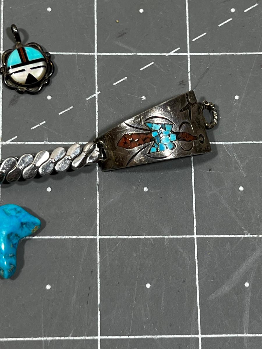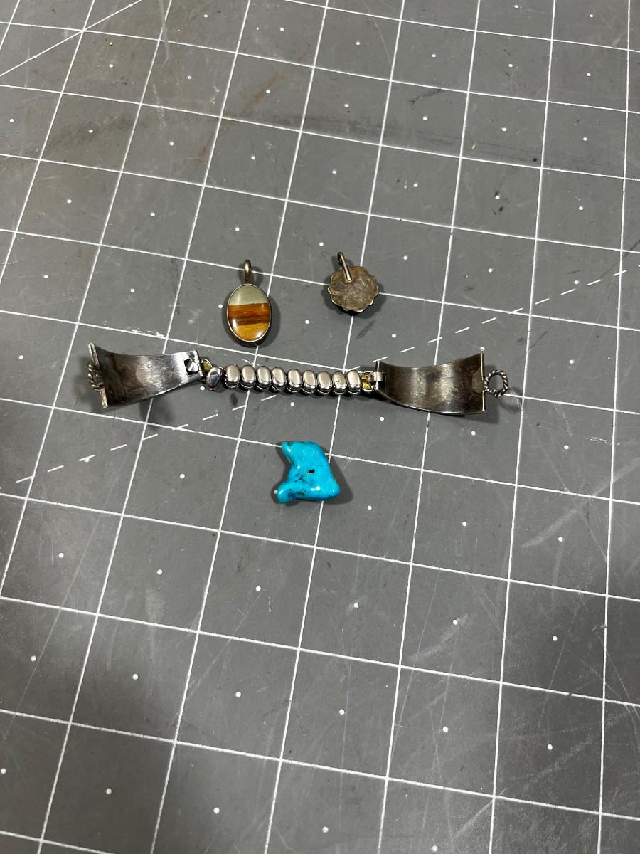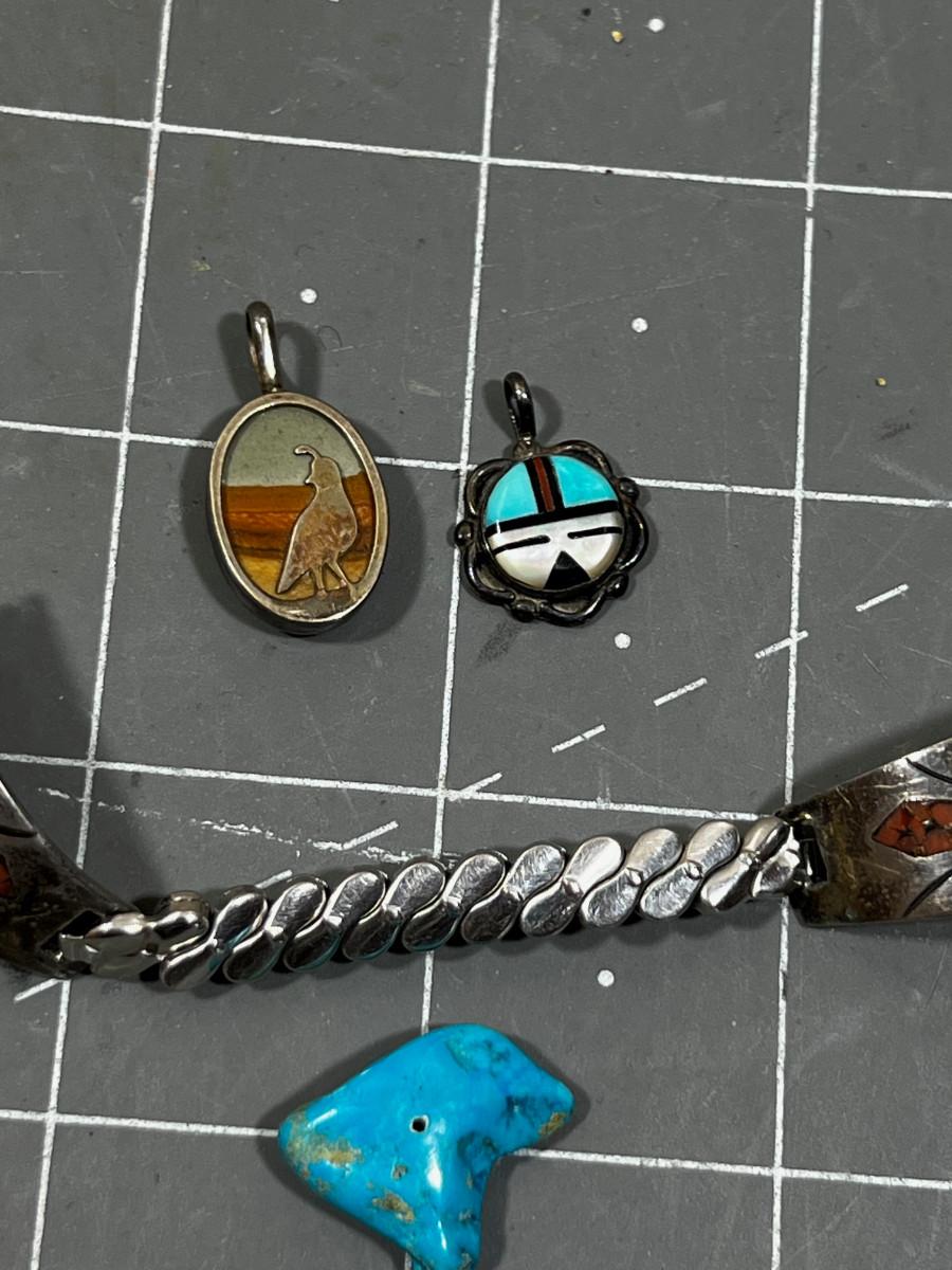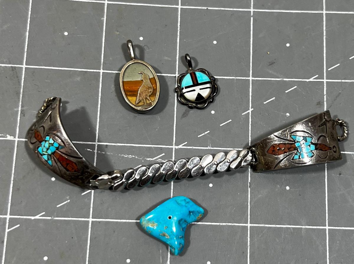 Turquoise and Silver Watch Band and A Couple of Pendants, Native Am. Crafted