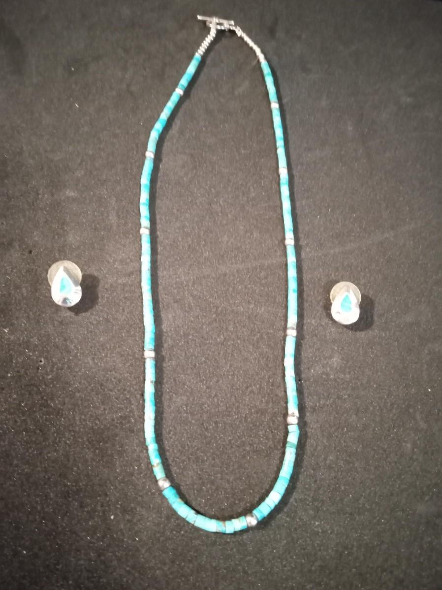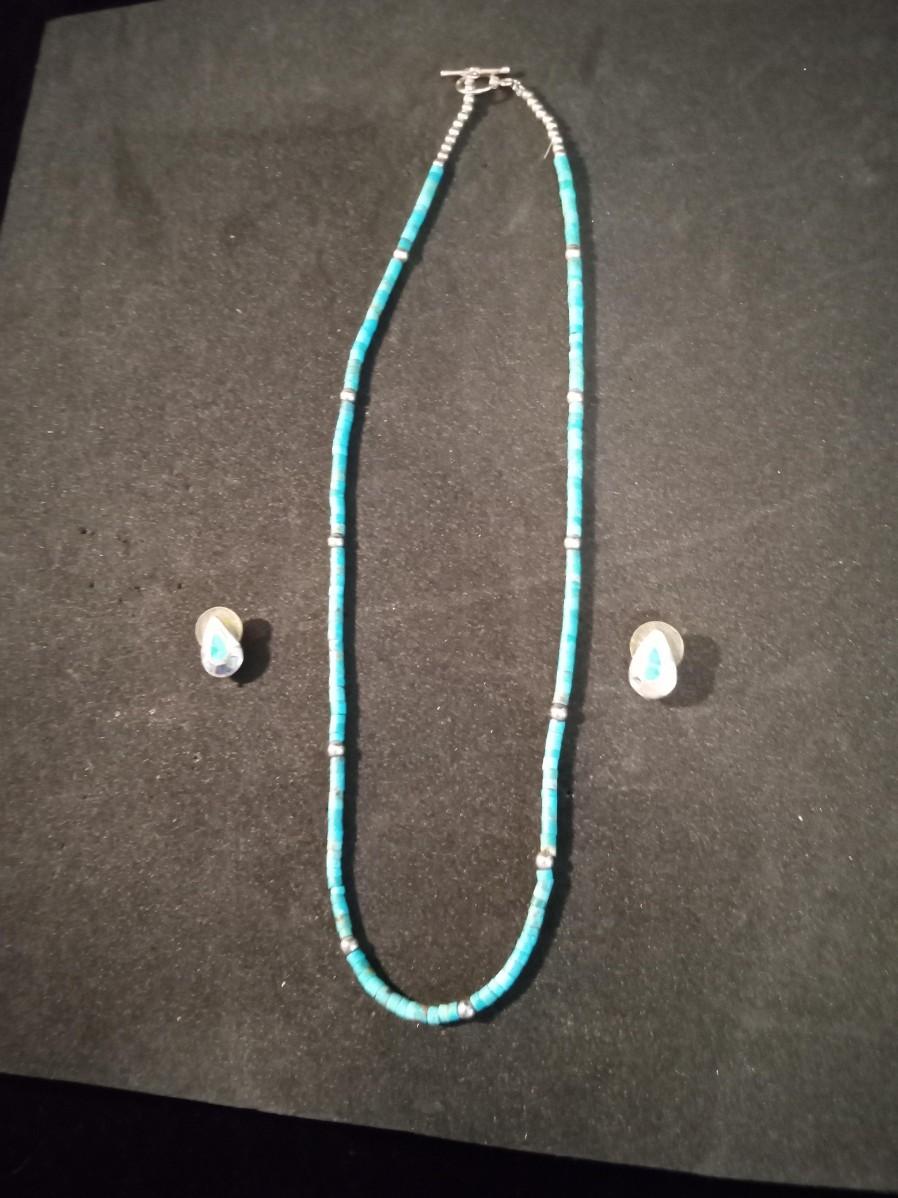 THE CLASP ON THE NECKLACE AND THE PIERCED EARRINGS ARE BOTH MARKED .925