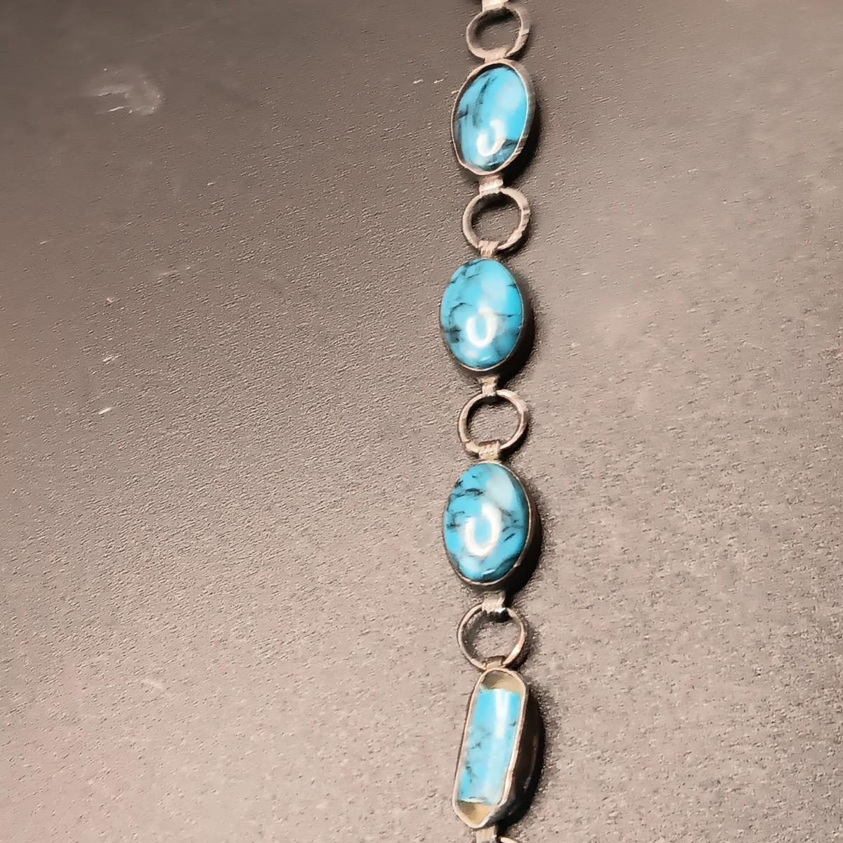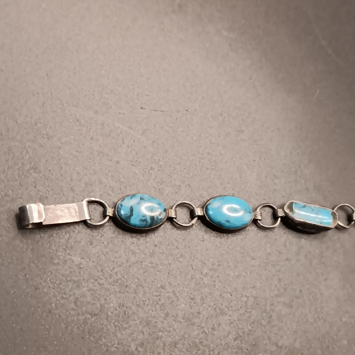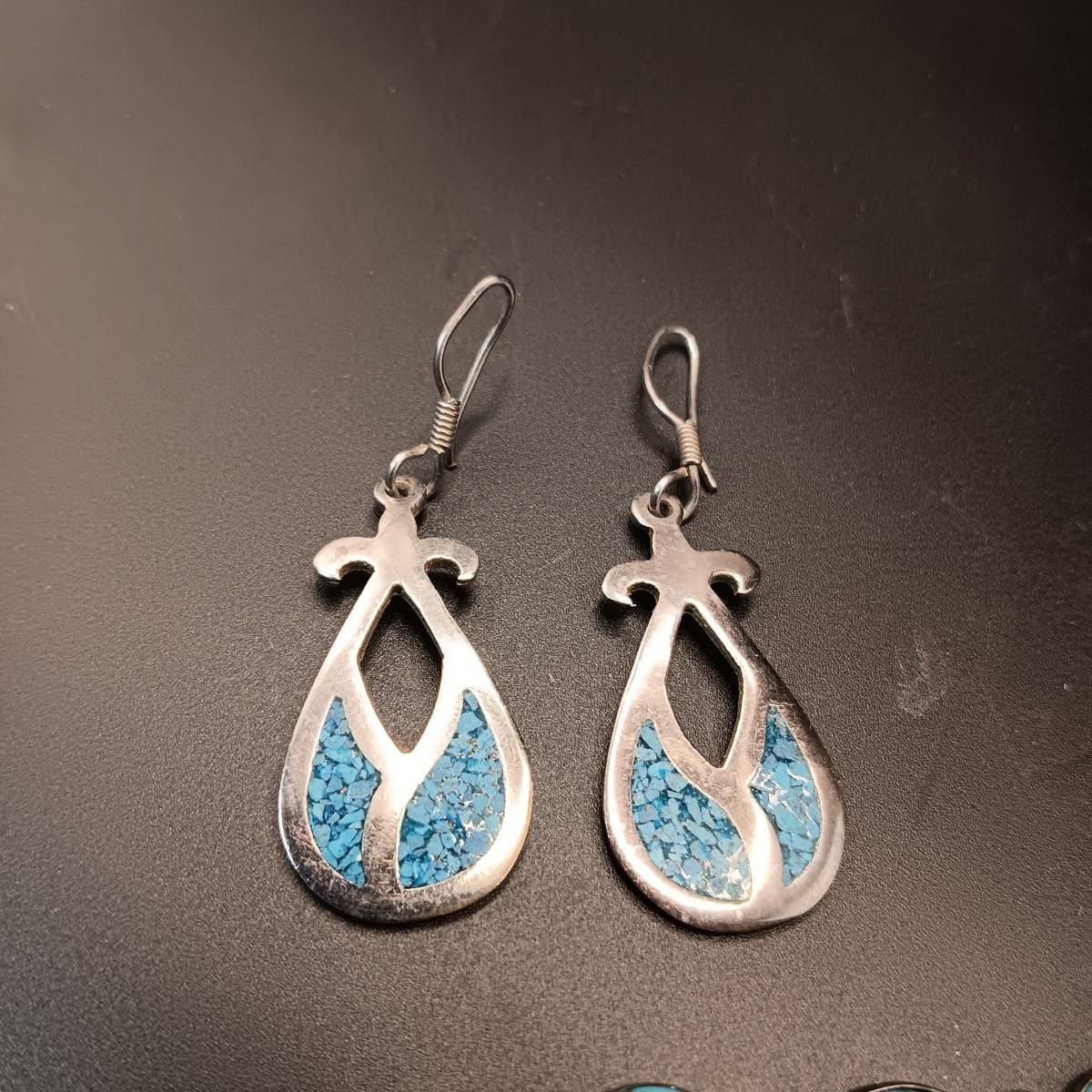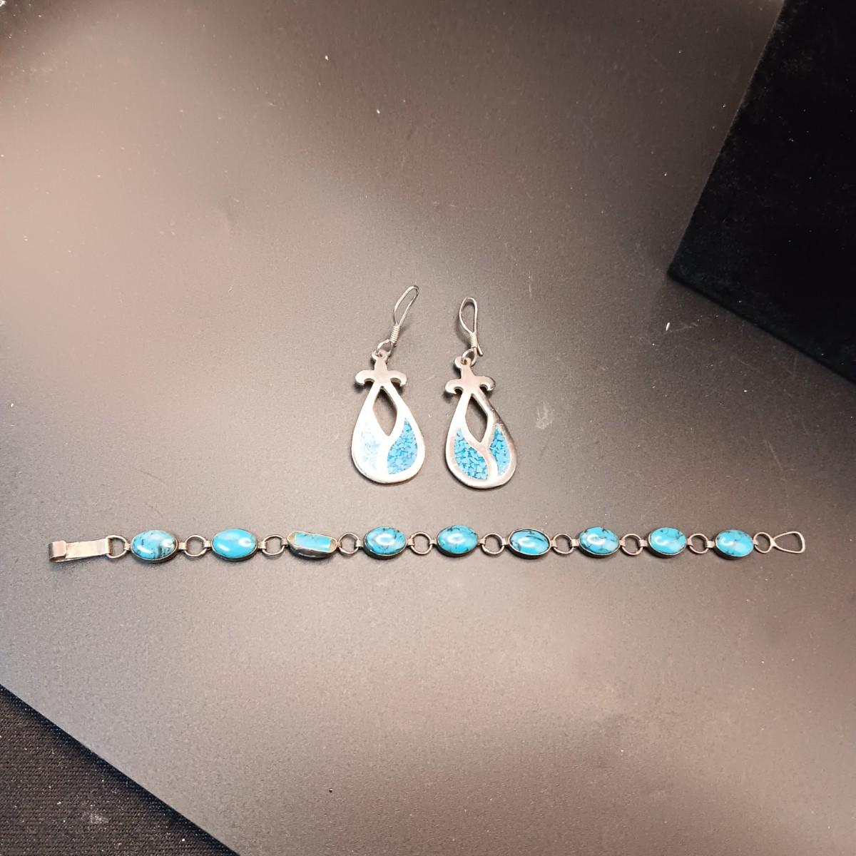 TURQUOISE AND STERLING SILVER EARRINGS AND BRACELET 9.48g