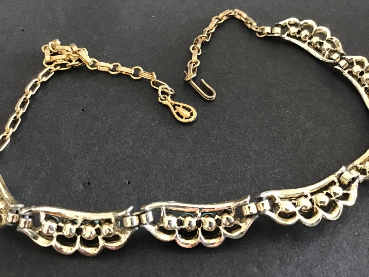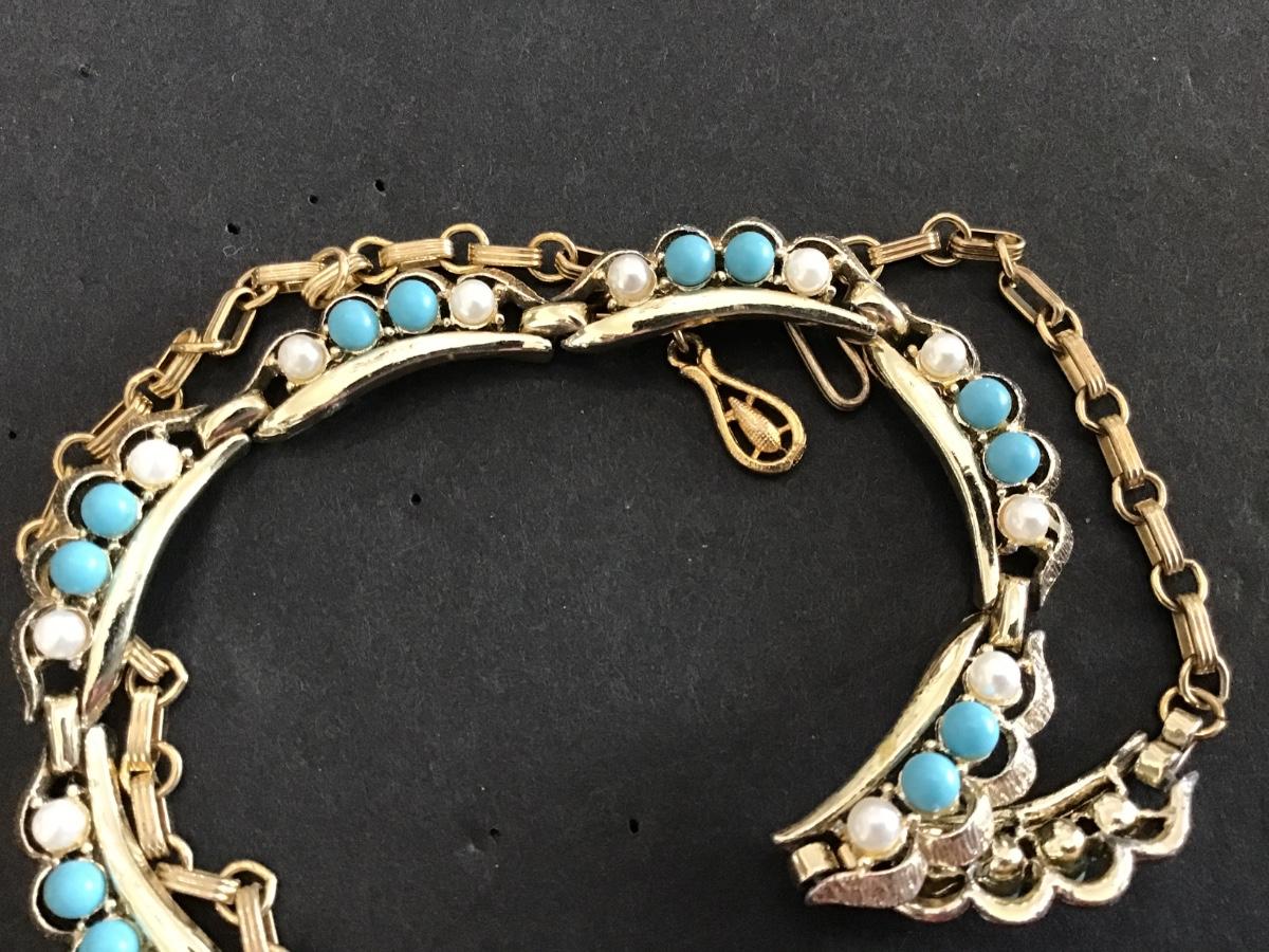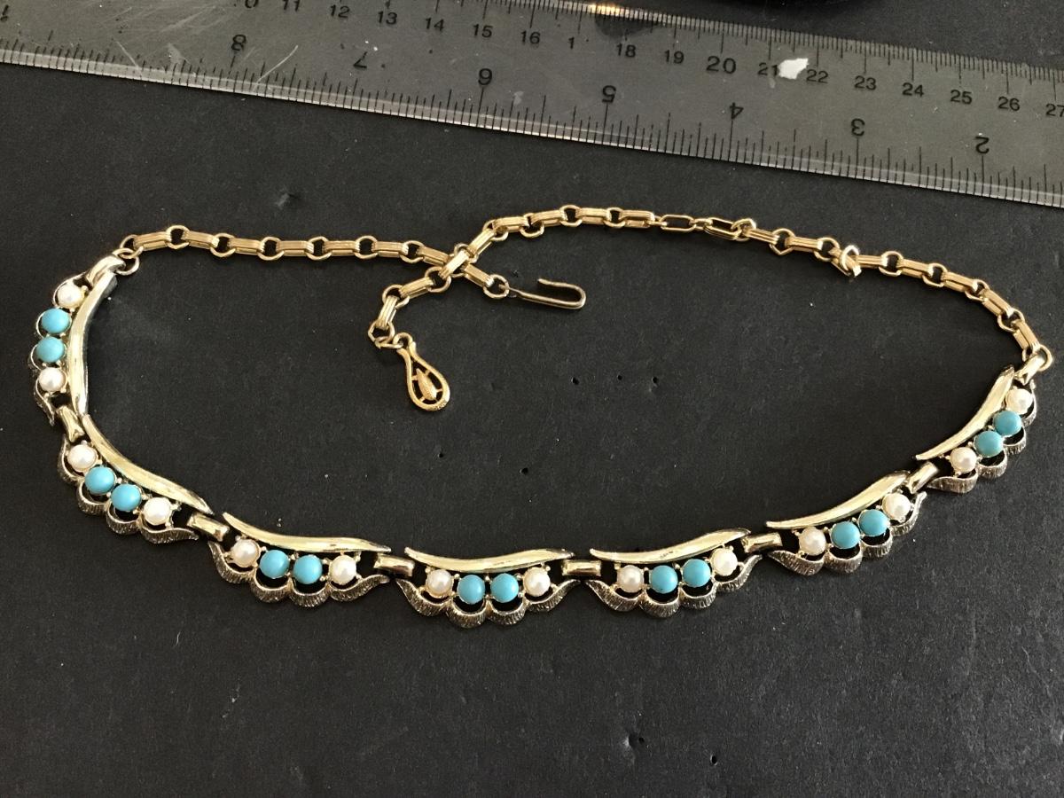 Turquoise and White Bead Gold Tone Vintage Necklace