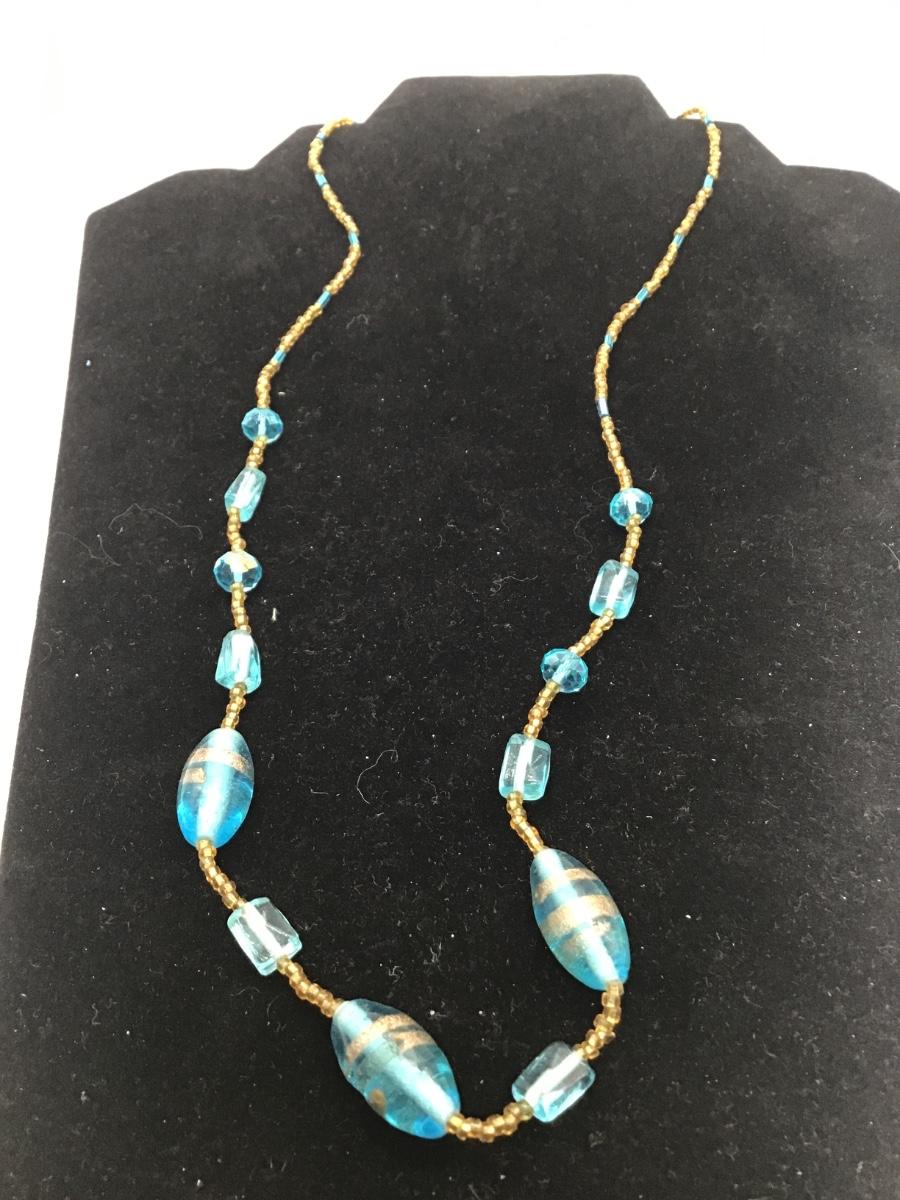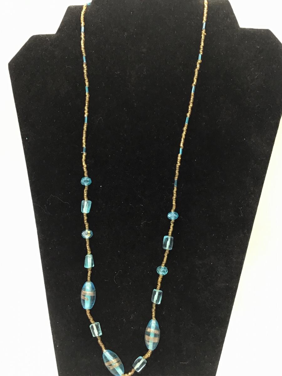 Turquoise and yellow seed bead necklace