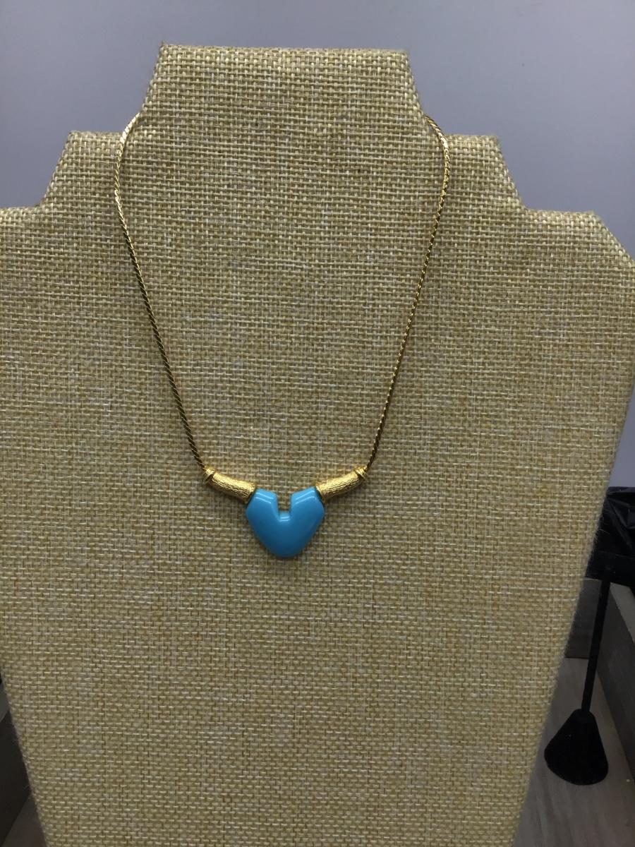Turquoise Blue and Gold Tones Fashion Necklace