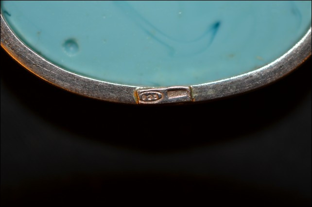 turquoise cameo pin with carved Greek scene and turquoise brooch with gold fill
