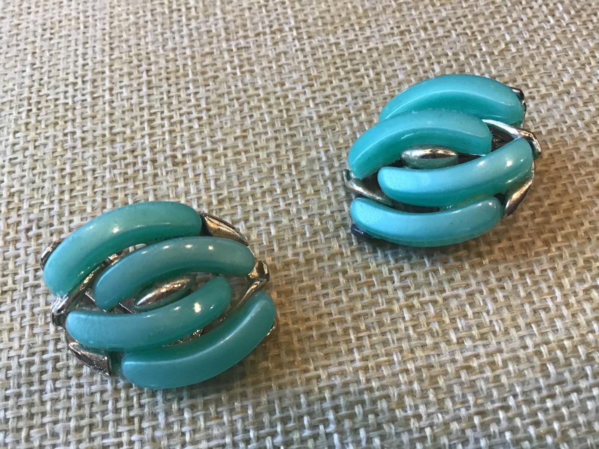Turquoise Clip On Earrings Thermoset Molded VTG