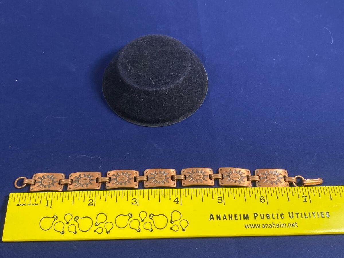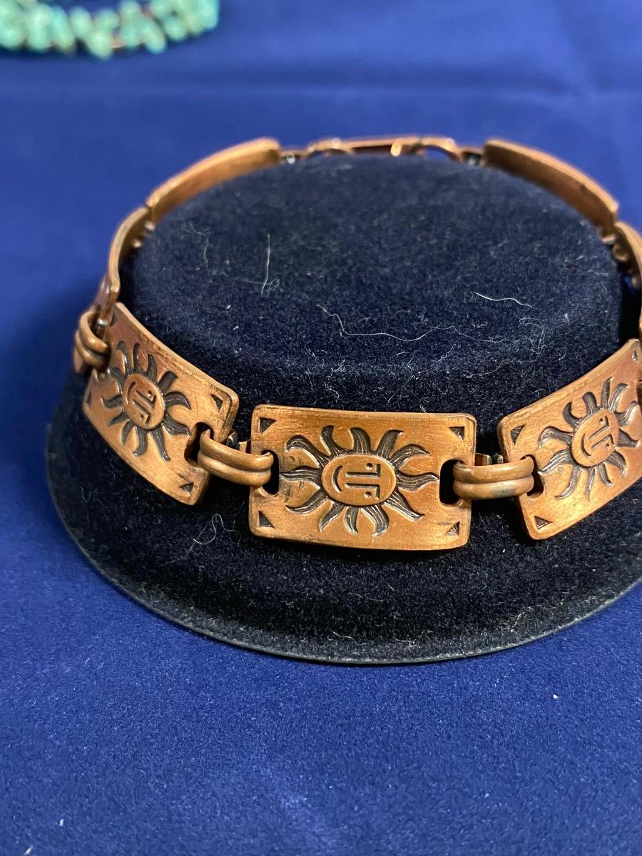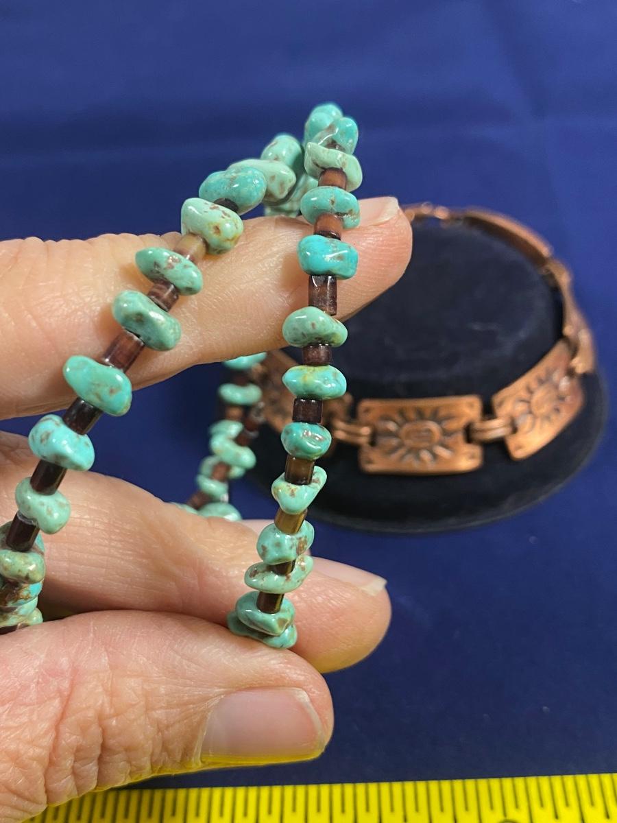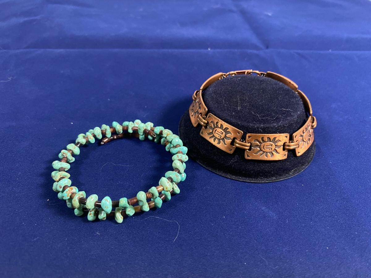 Turquoise Coil Bracelet & Copper Sun Stamped Link Bracelet. Good condition. Copper bracelet is about 7.5" length.