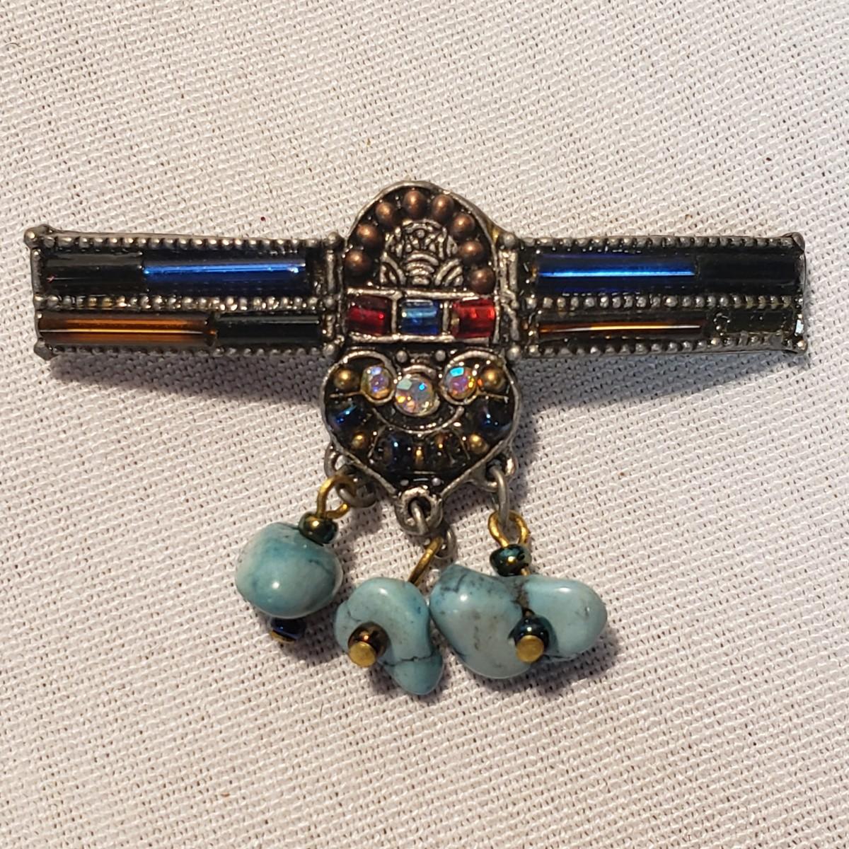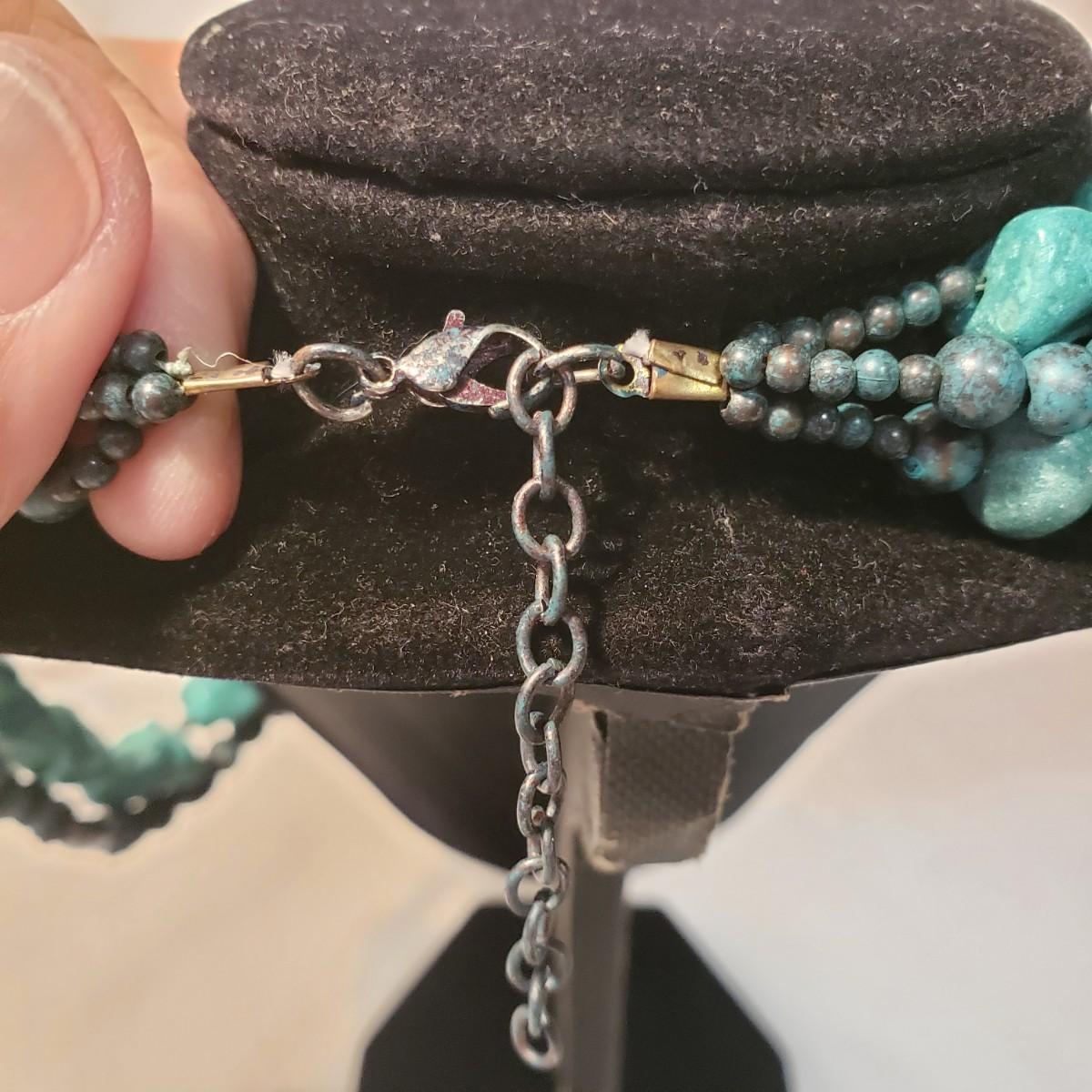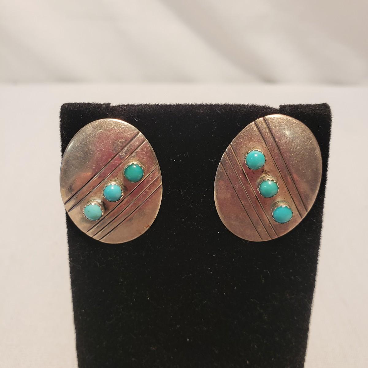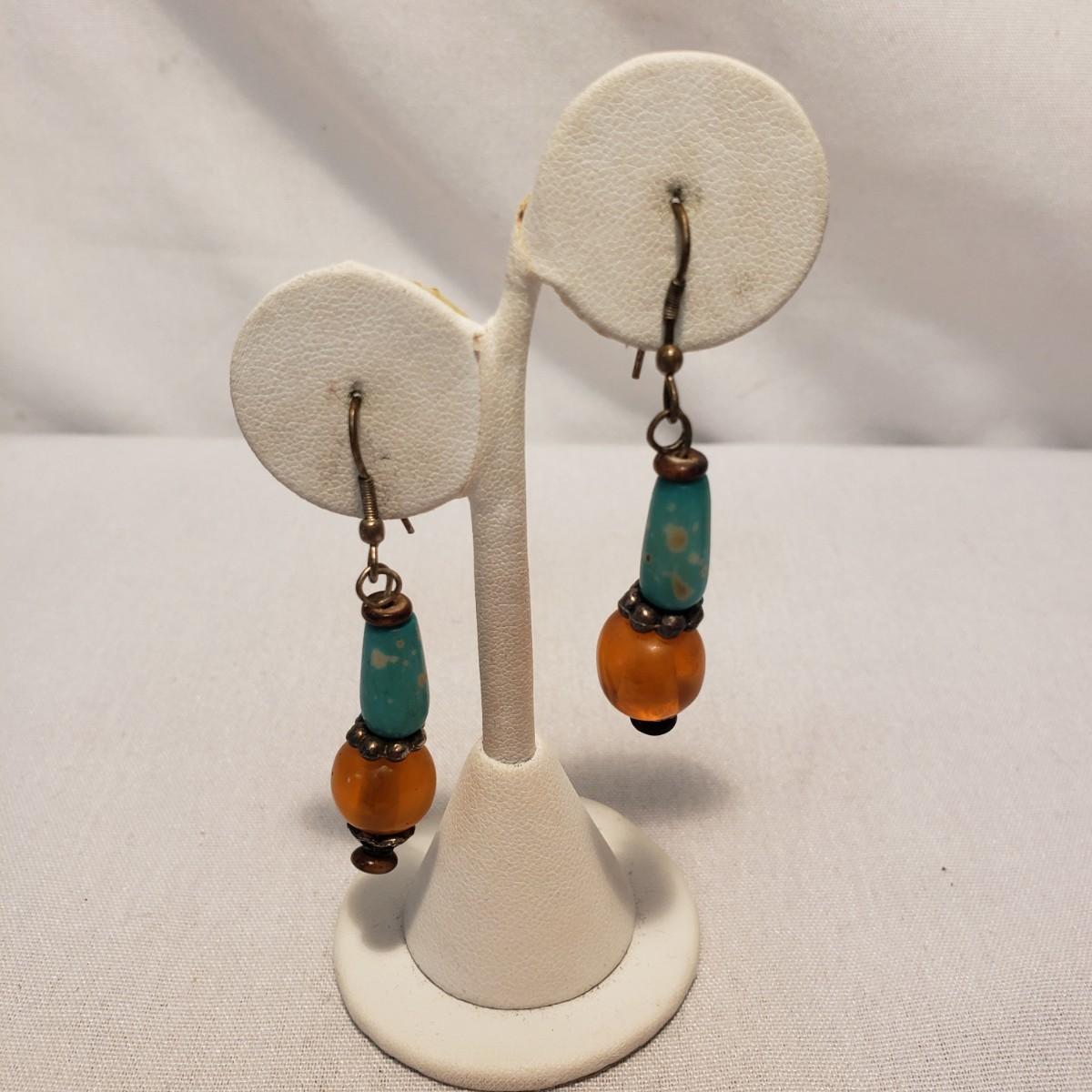 This Turquoise colored lot features 11 earrings (for pierced ears), 8 necklaces and 1 pin. The first necklace photographed with multiple stones/wooden beads measures 18". All the necklaces and some earrings appear to have Turquoise stones woven into their design. There are 11 pairs of earrings. All markings have been photographed, otherwise there was no visible marks. The smallest oval Turquoise earring are marked 925/Thailand. The other pair marked 925 have a Turquoise fan shape.