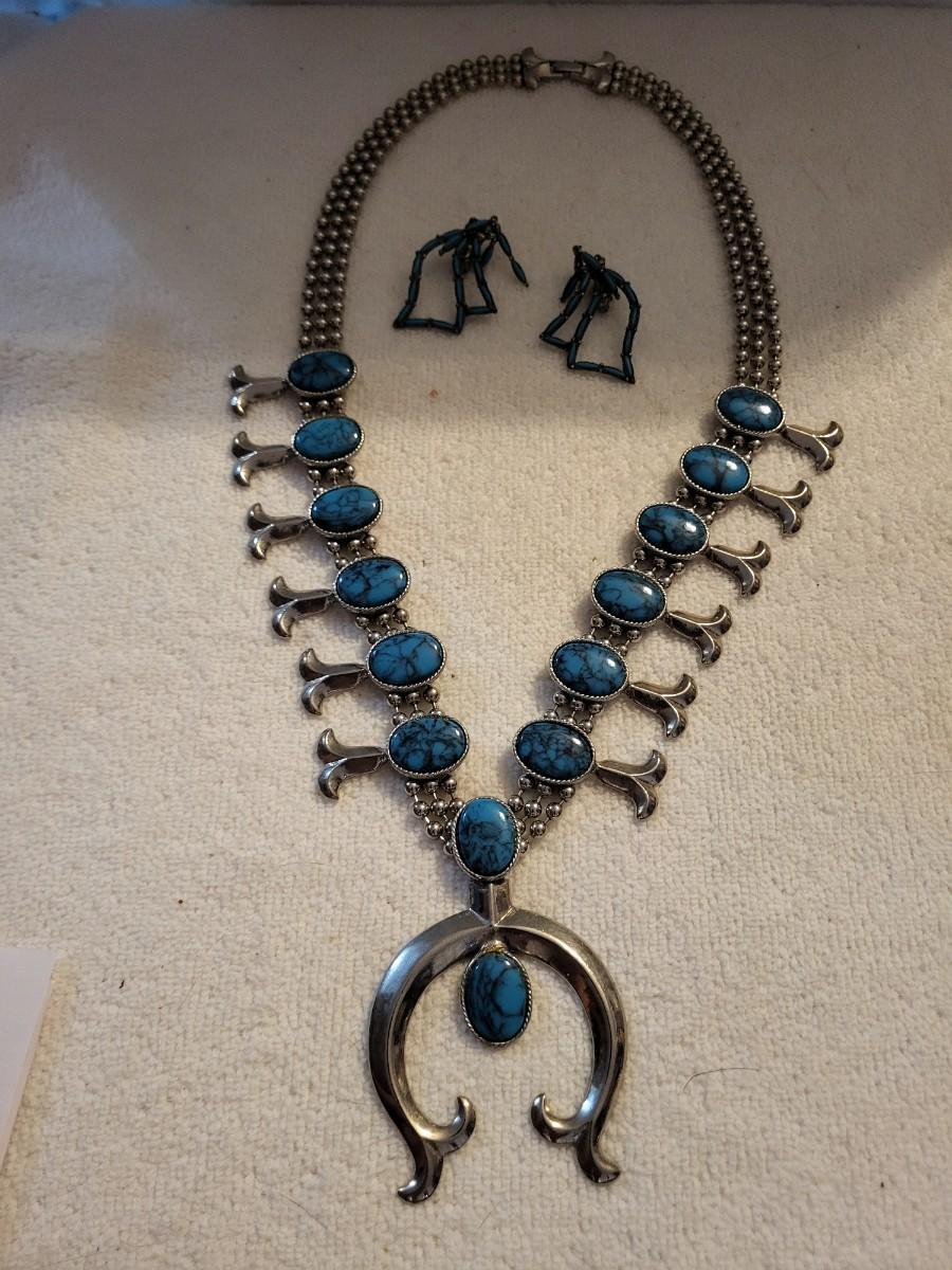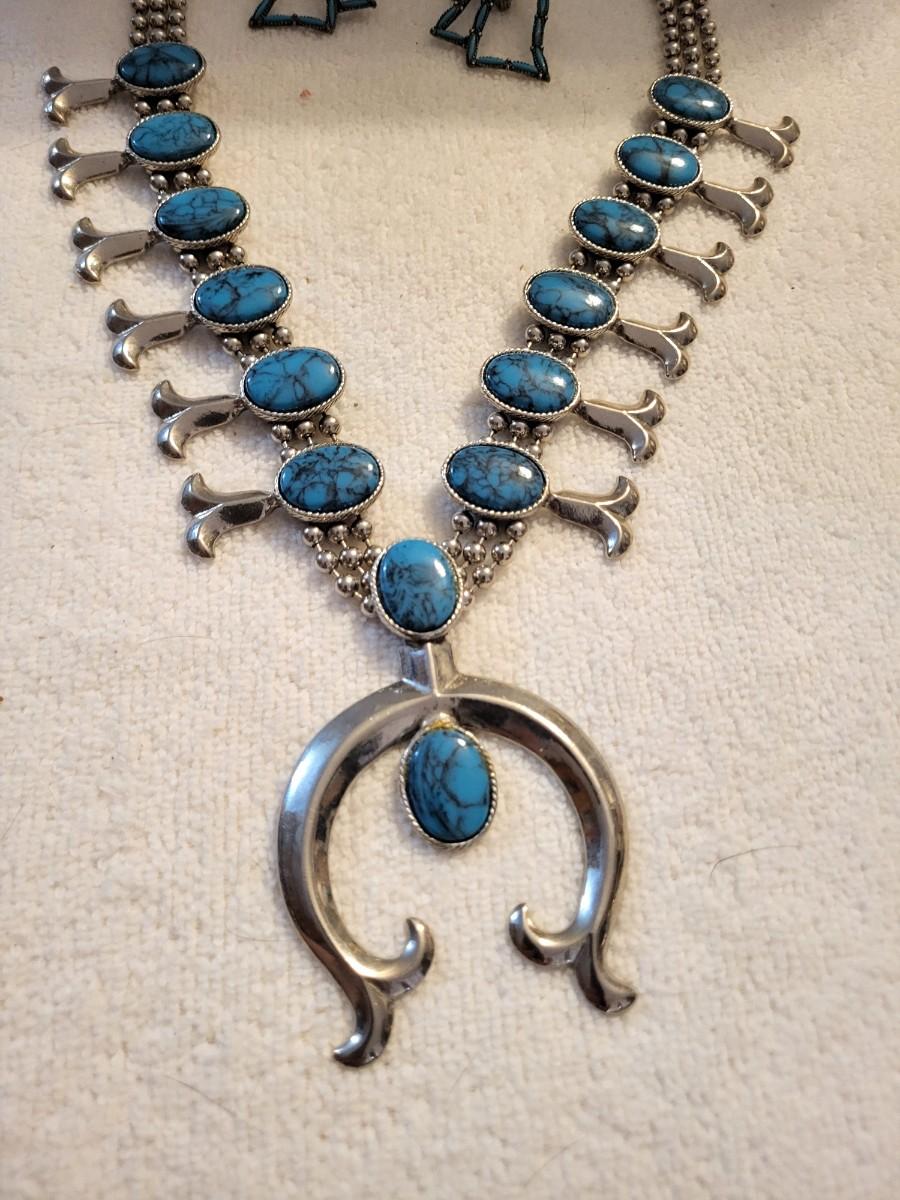 TURQUOISE COLORED SQUASH BLOSSOM INSPIRED