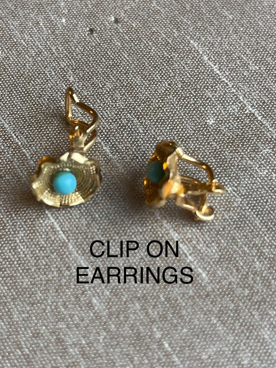 5 pair of pierced earrings, 1 pair of gold clip earrings, 2 pendants (1 with chain).