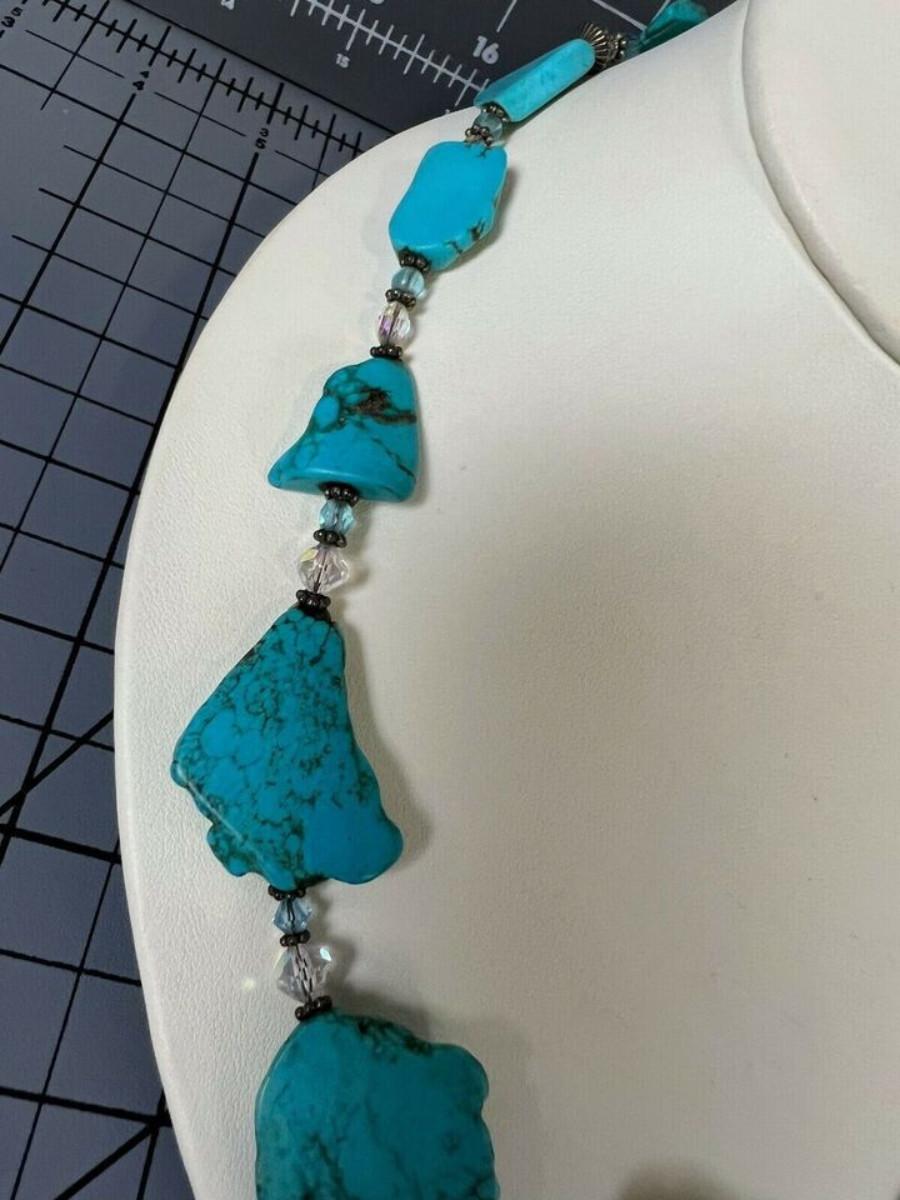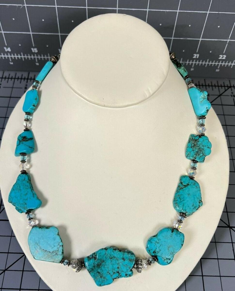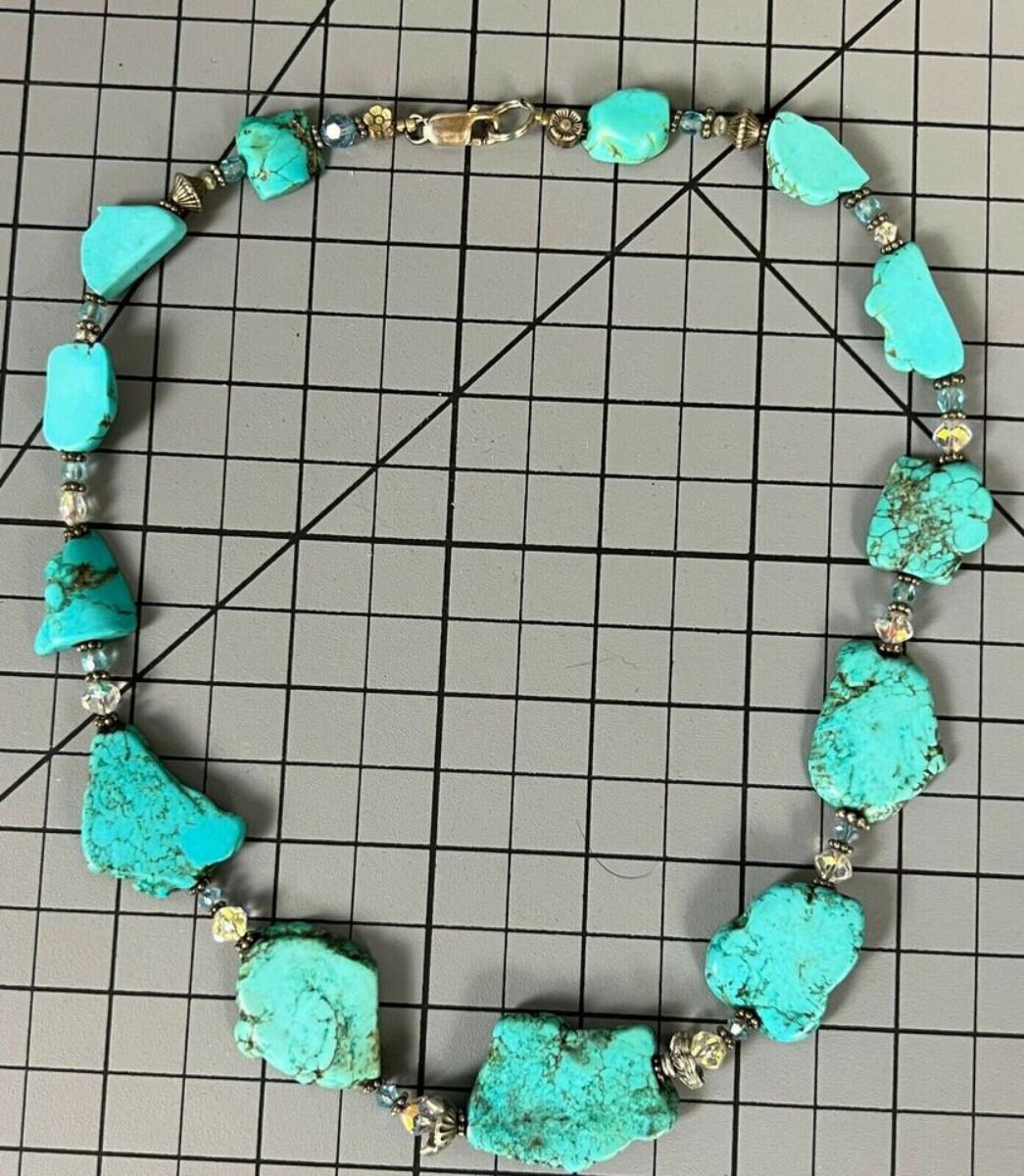 Turquoise & Crystal Beaded Necklace With .925 Silver Clasp 21"