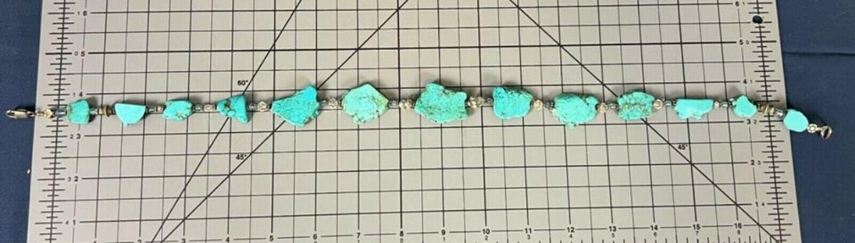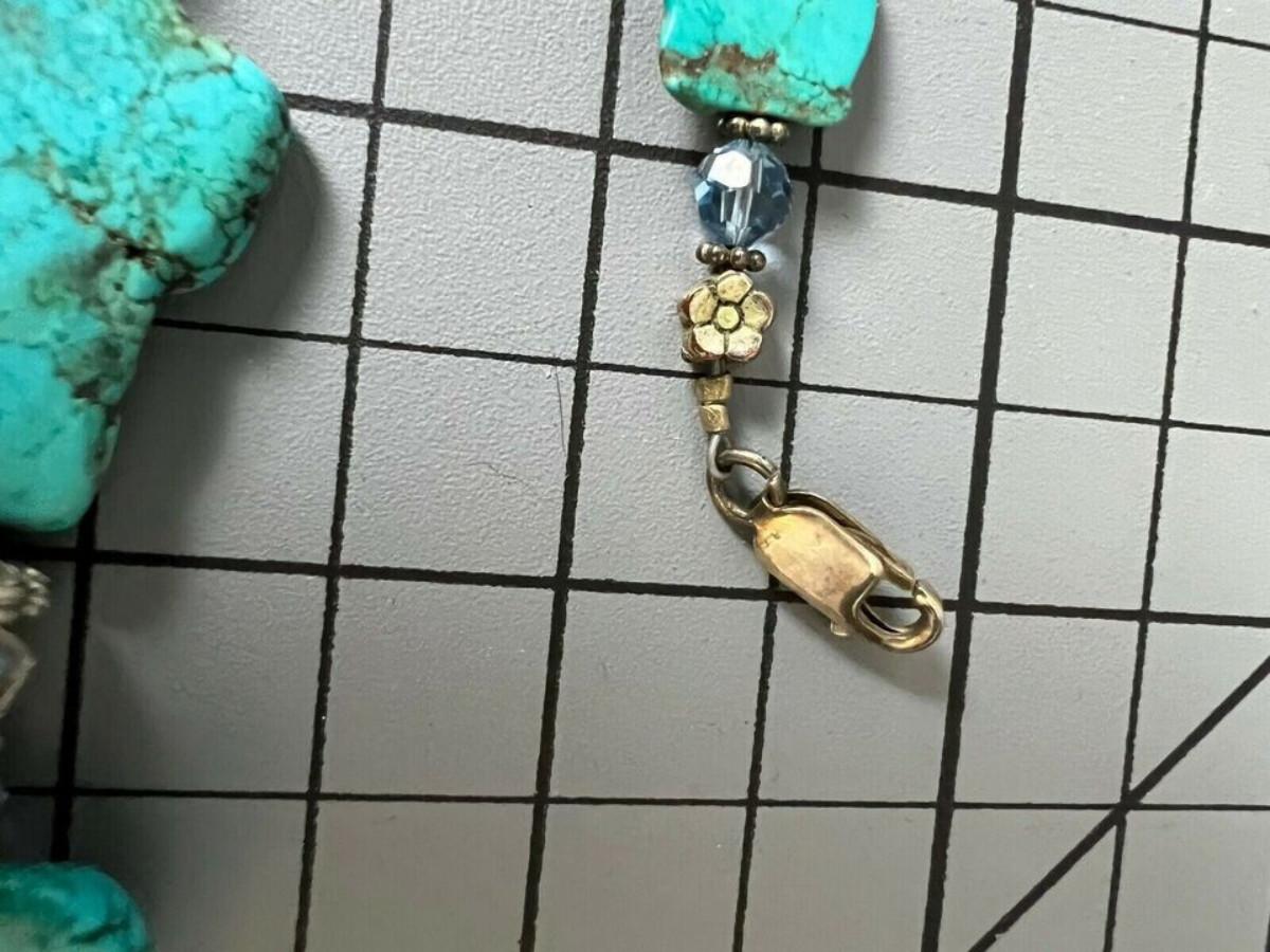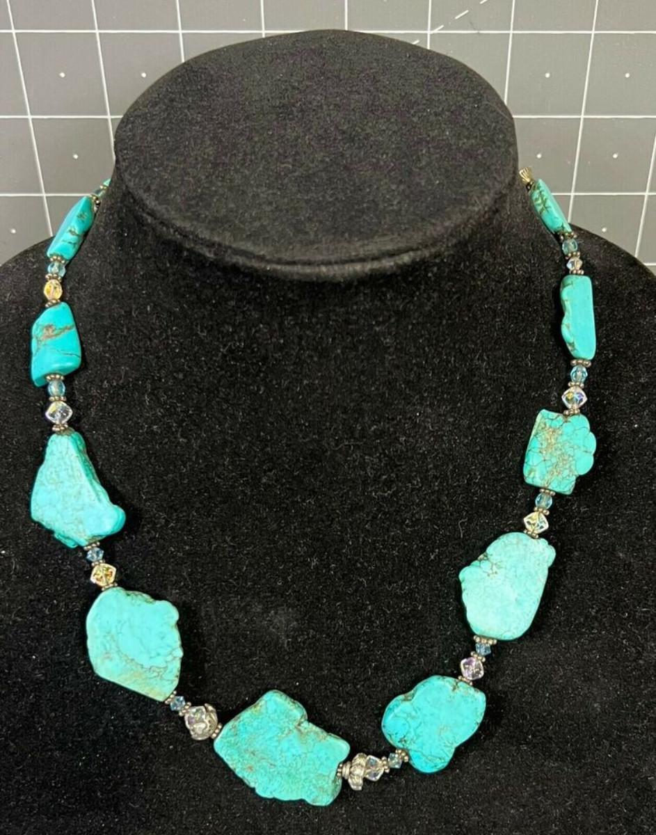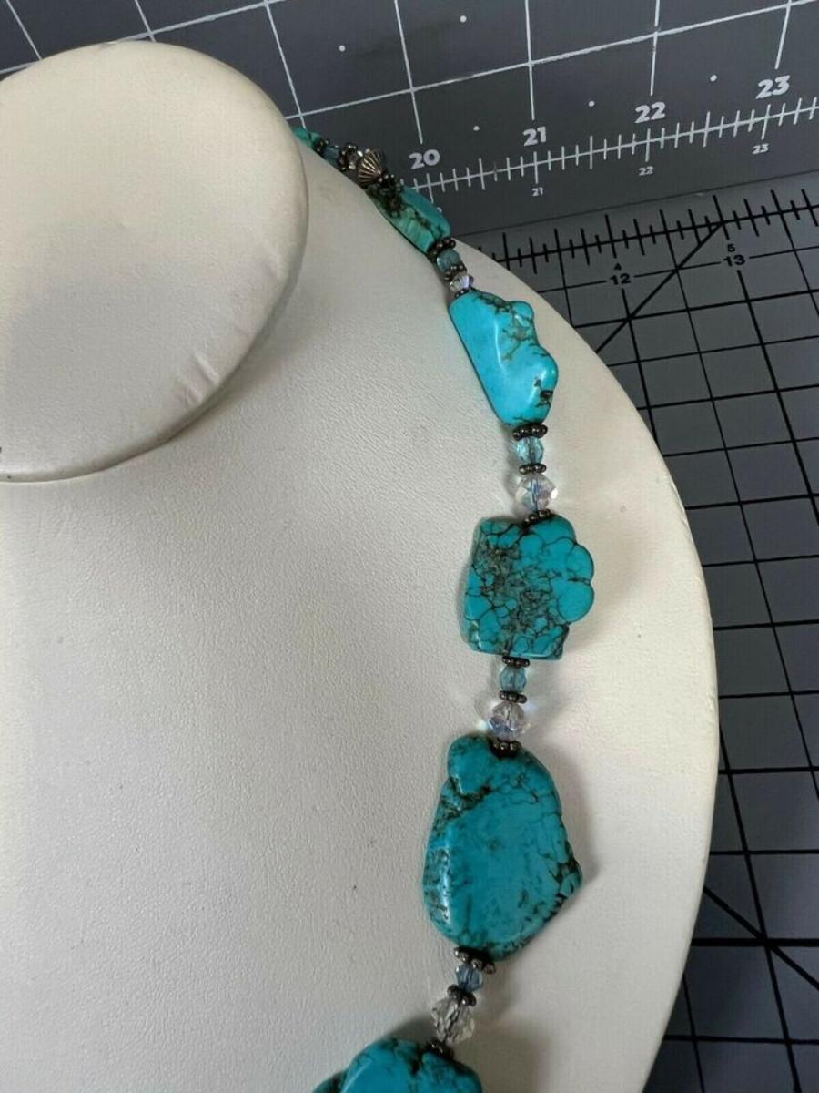 Turquoise & Crystal Beaded Necklace With .925 Silver Clasp 21"