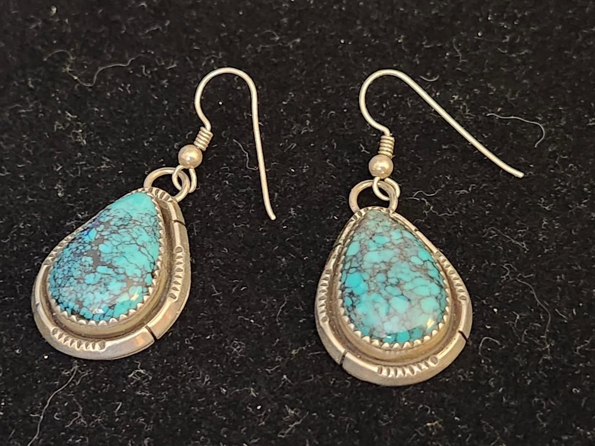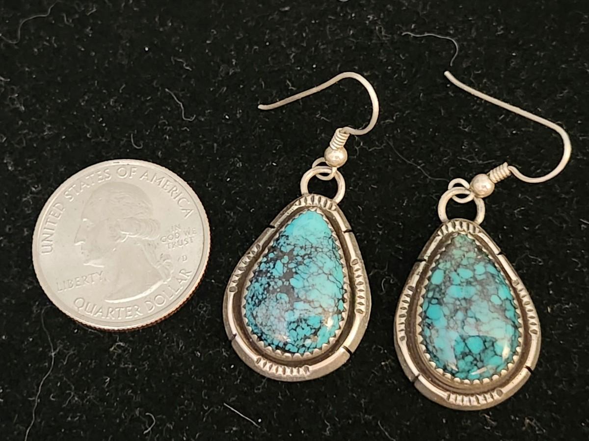 High grade turquoise set in sterling silver, this is probably from the Kingman mine.