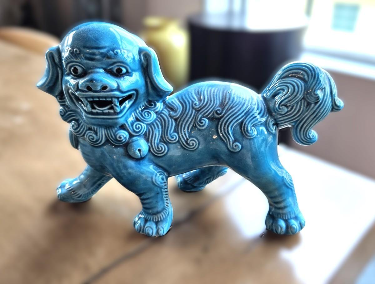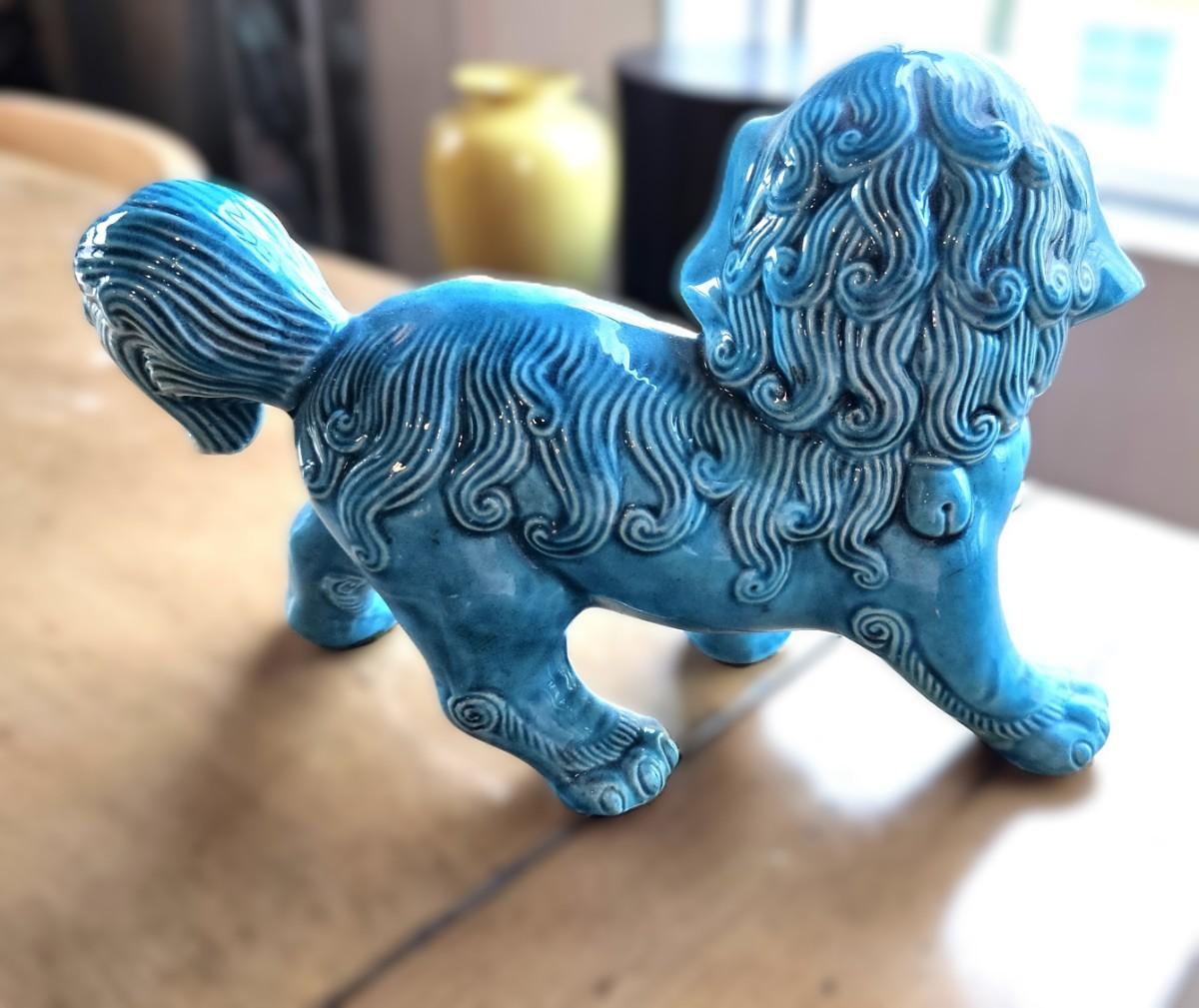 Turquoise Glazed FOO Dog Figurine, 5 1/2 H