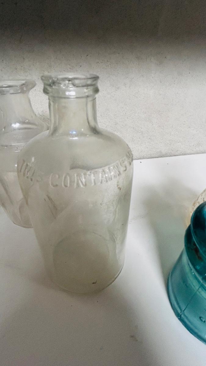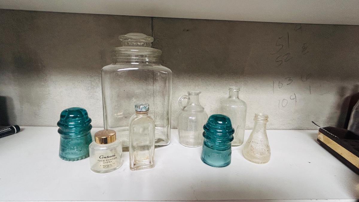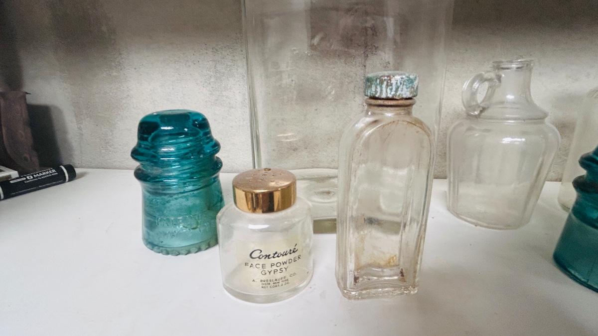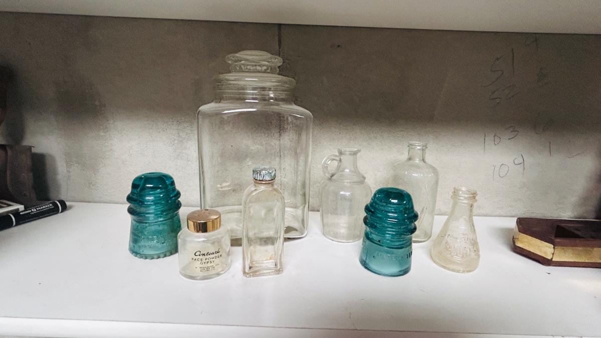 TURQUOISE INSULATORS AND GLASS BOTTLES SAVED FROM THE INCINERATOR