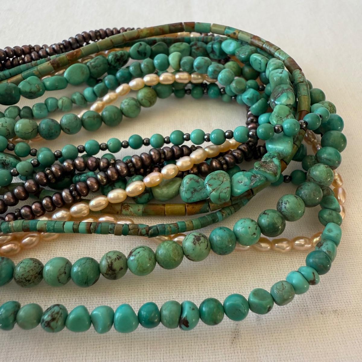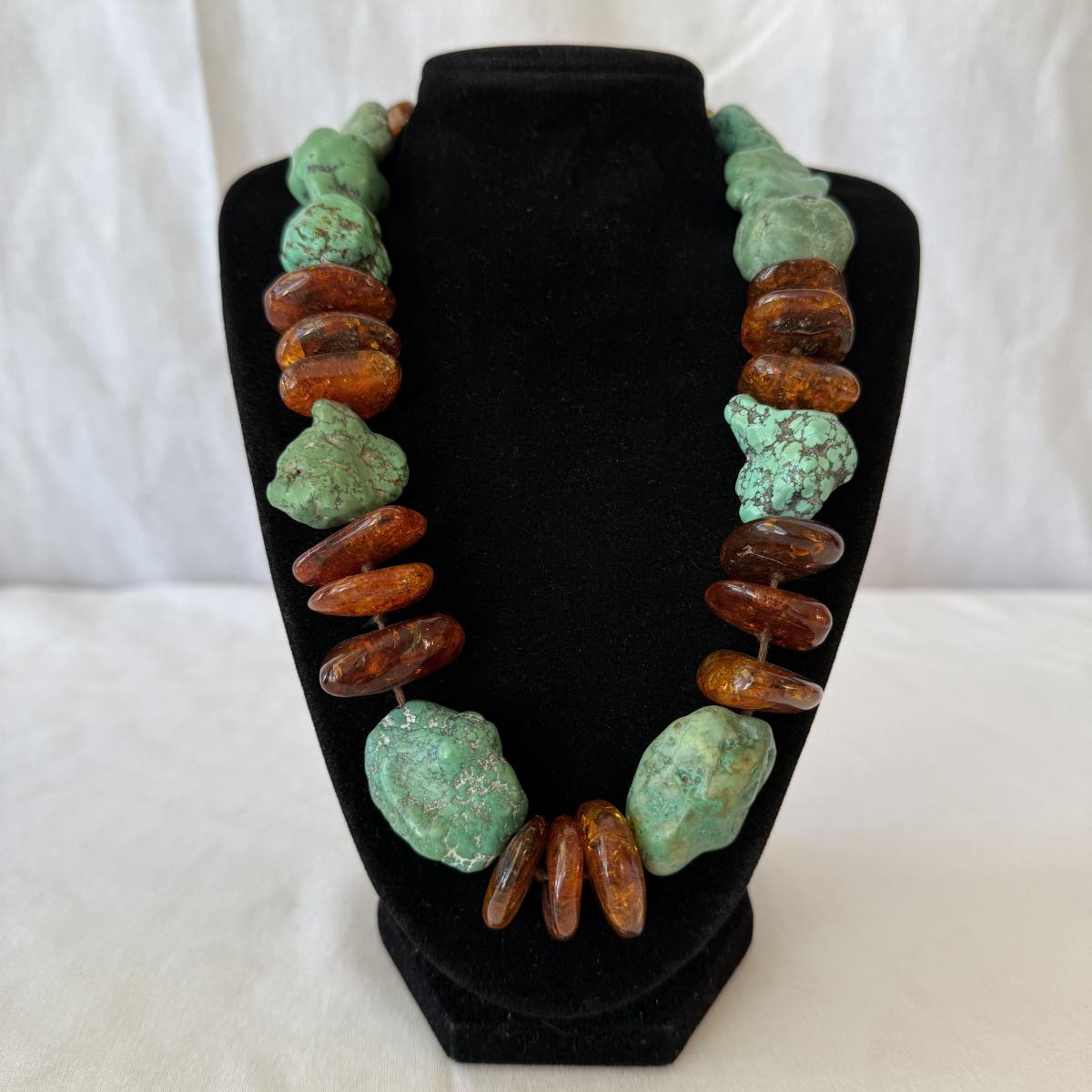 Turquoise Jewelry with Amber & Pearls (K-HS)