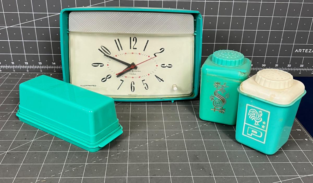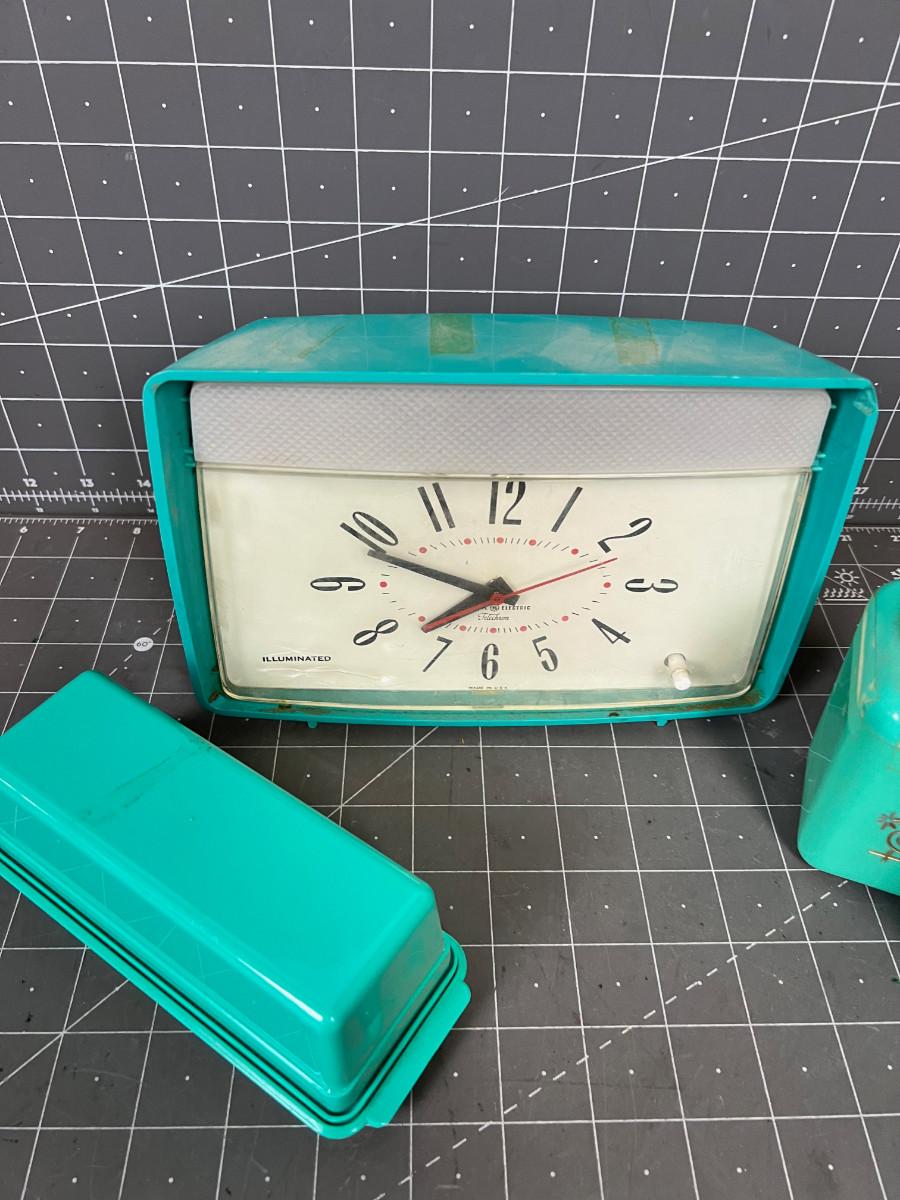 Turquoise Kitchen: Clock, S & P, Butter Dish