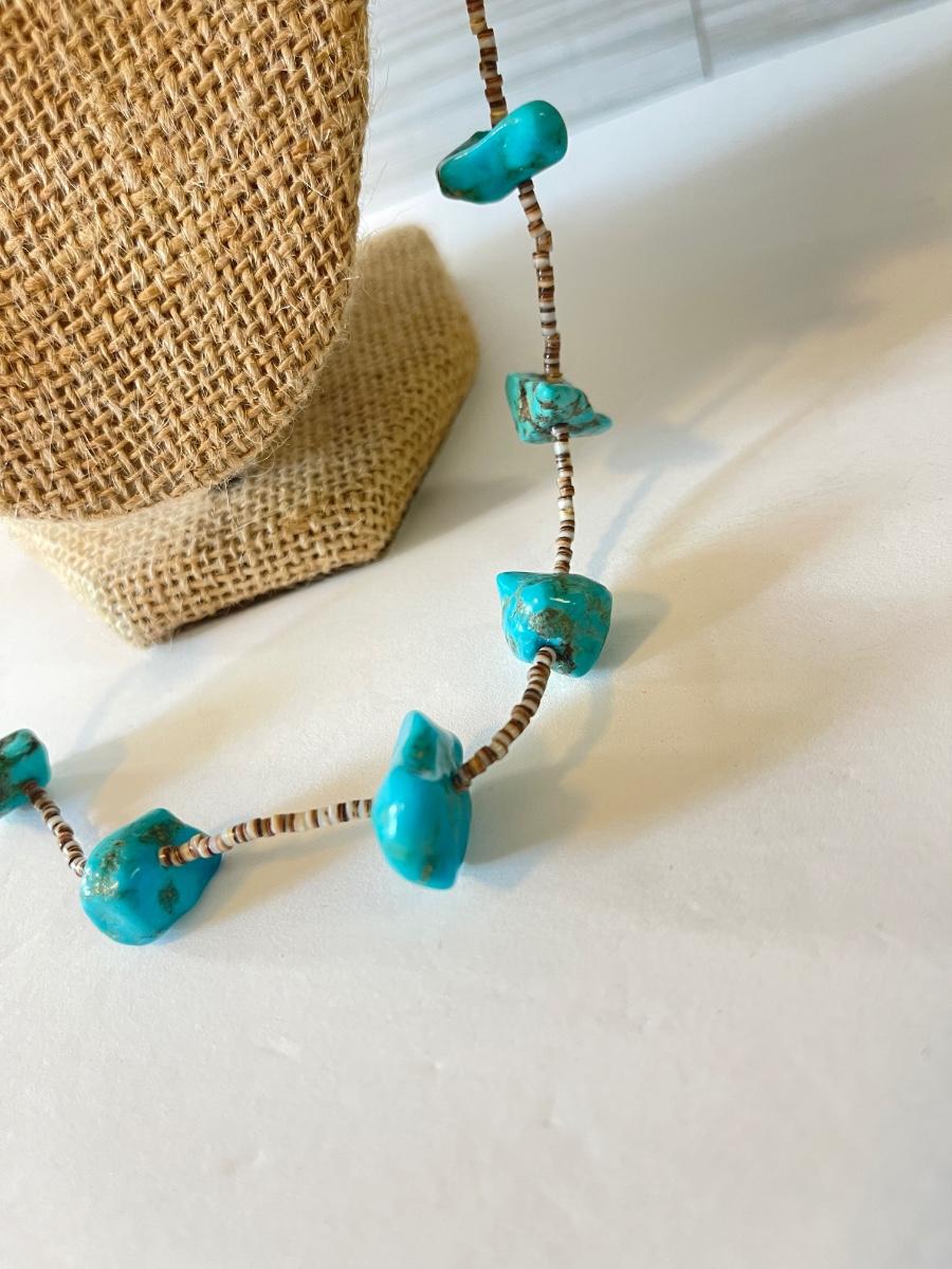 Turquoise nugget & heishi shell necklace. Navajo shop art